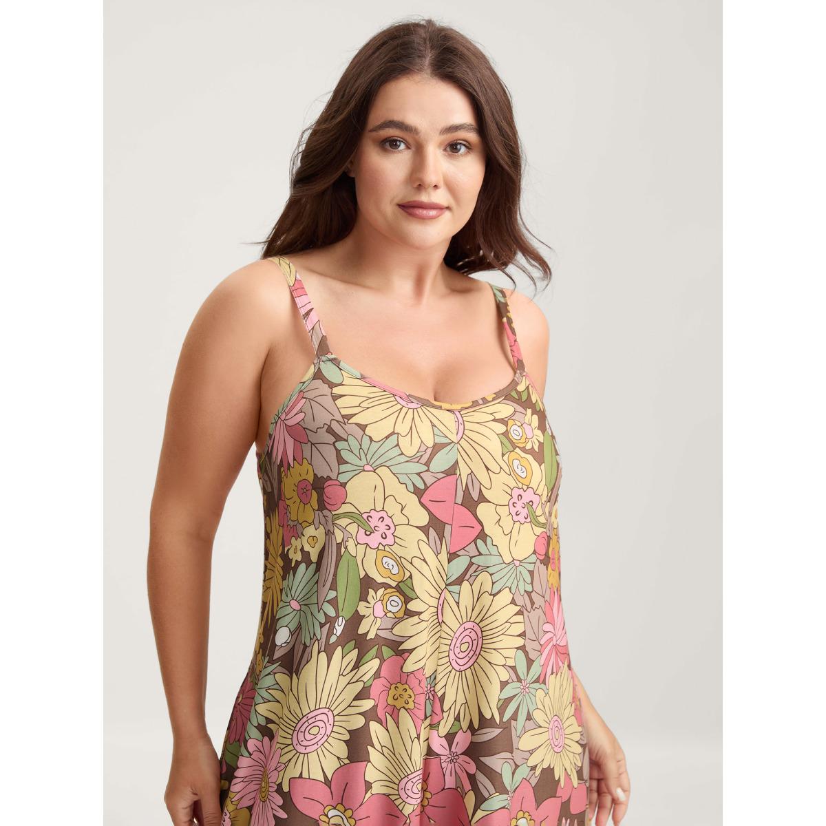 Plus Size Yellowishbrown Vivid Groove Stretchy Adjustable Jumpsuit Women Playful Sleeveless Non Casual Loose Jumpsuits BloomChic 10/M