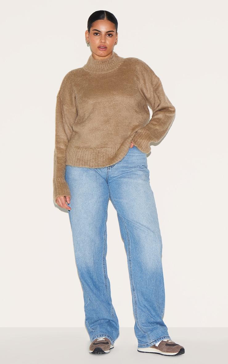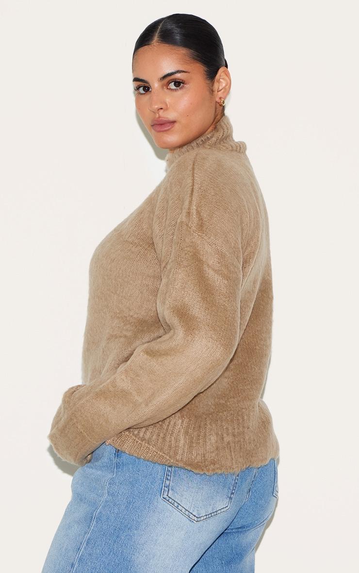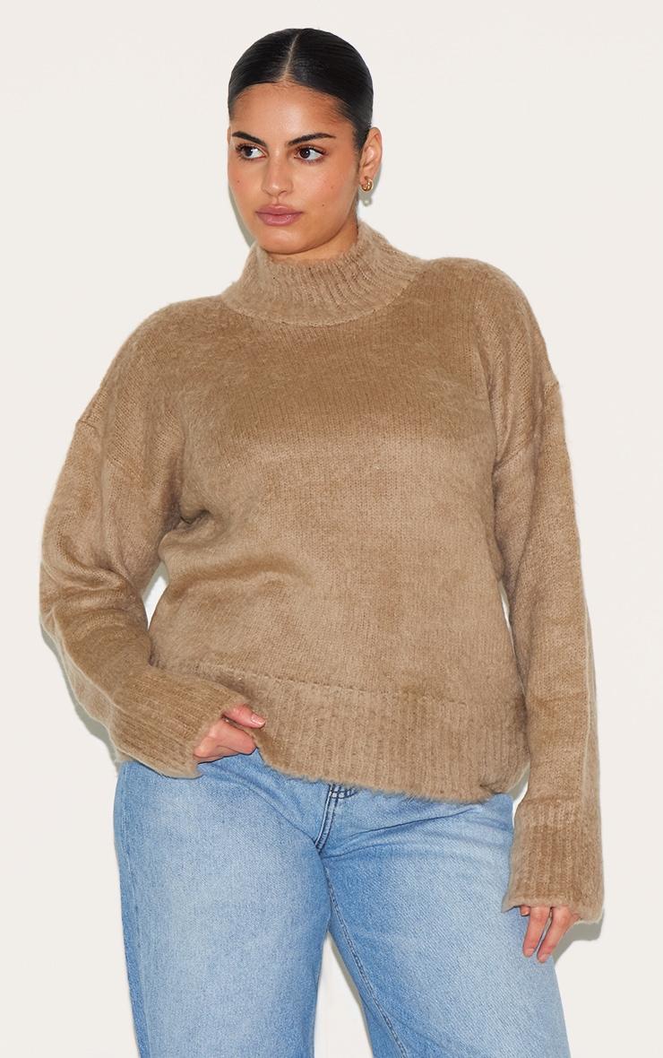 Refine your off-duty edit with this tactile high-neck knit. The eyelash texture elevates the classic stone hue, adding a nuanced dimension to your casual rotation. The high neckline offers a sophisticated counterpoint to the relaxed silhouette, making it an ideal layering piece. Consider styling yours with wide-leg tailored pants from our bottoms collection for an effortlessly chic daytime ensemble. Length approx 58cm/23inch (Based on a sample size XL) Model wears size XLModel Height - 5ft 9inchp]:!mb-4inch>Brand: PrettyLittleThingCategory: KnitwearProduct type: SweaterColor: StoneMaterial: Faux WoolDesign: PlainNeckline: High NeckSleeves: LongOccasion: Day