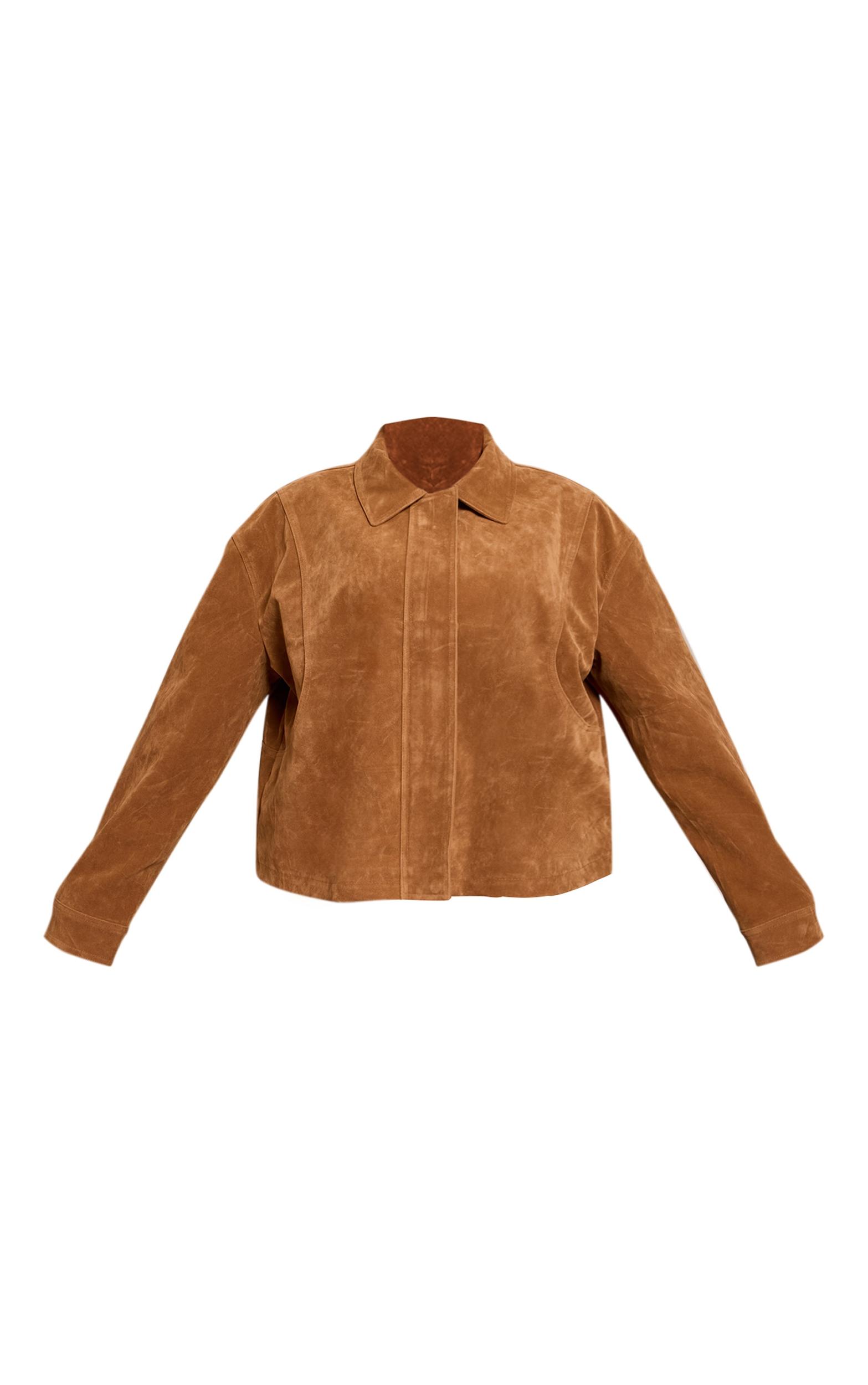 Upgrade your outerwear edit with the plus tan faux suede concealed placket bomber jacket. Crafted from smooth faux suede in a warm tan hue, this jacket features a relaxed silhouette and concealed placket for a minimal finish. Style with jeans and sneakers for laid-back chic.Length approx 58.5cm/23inch (Based on sample size XL)Model wears size XLModel Height - 5ft 9inchp]:!mb-4inch>Category: OuterwearProduct type: BomberColor: TanMaterial: Faux SuedeOccasion: Day