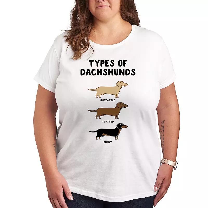 She will love showing off her style with this Plus Types Of Dachshunds Graphic Tee. FEATURES Short sleeves CrewneckFABRIC & CARE Solid Color: Cotton ; Heather Colors: Cotton/Polyester Machine wash Imported Size: 4X. Color: White. Gender: female. Age Group: adult.