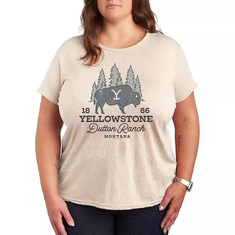 She will love showing off her style with this Plus Yellowstone Dutton Ranch Bison Graphic Tee. FEATURES Short sleeves CrewneckFABRIC & CARE Solid Color: Cotton ; Heather Colors: Cotton/Polyester Machine wash Imported Size: 4X. Color: Beig/Khaki. Gender: female. Age Group: adult.