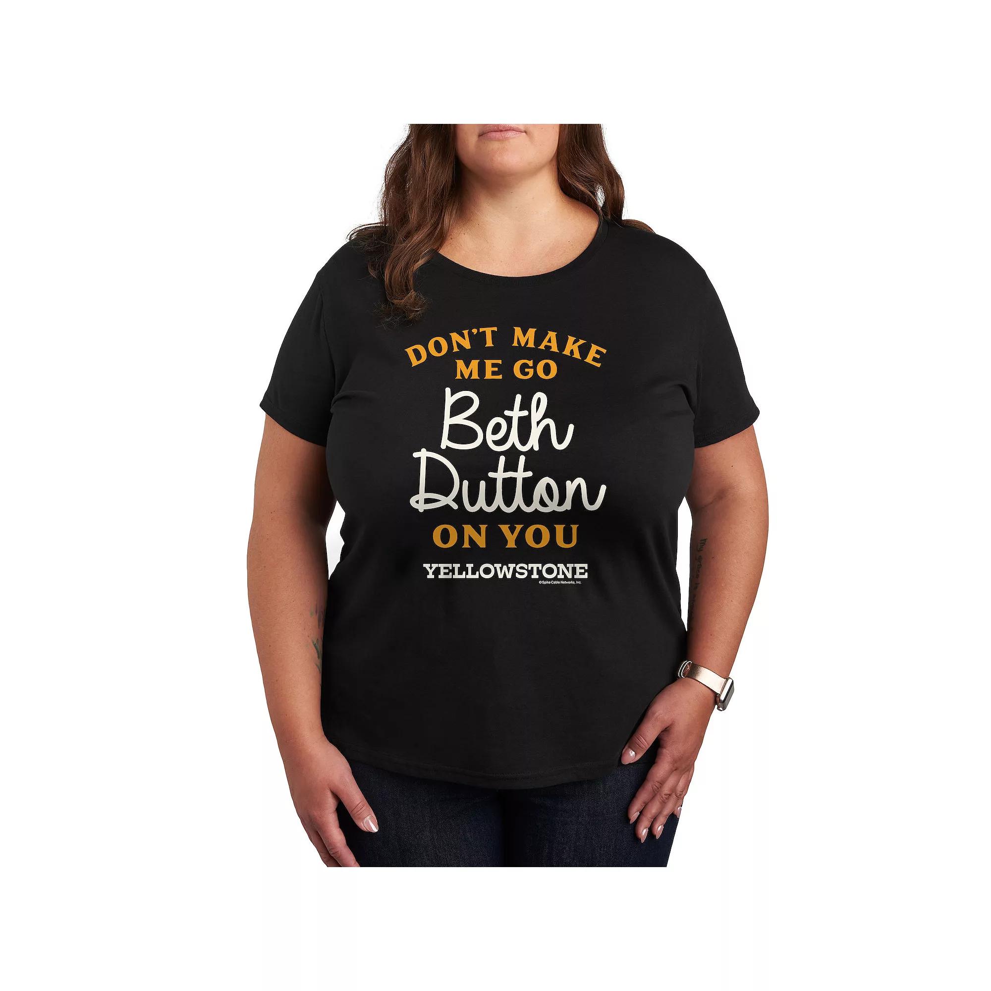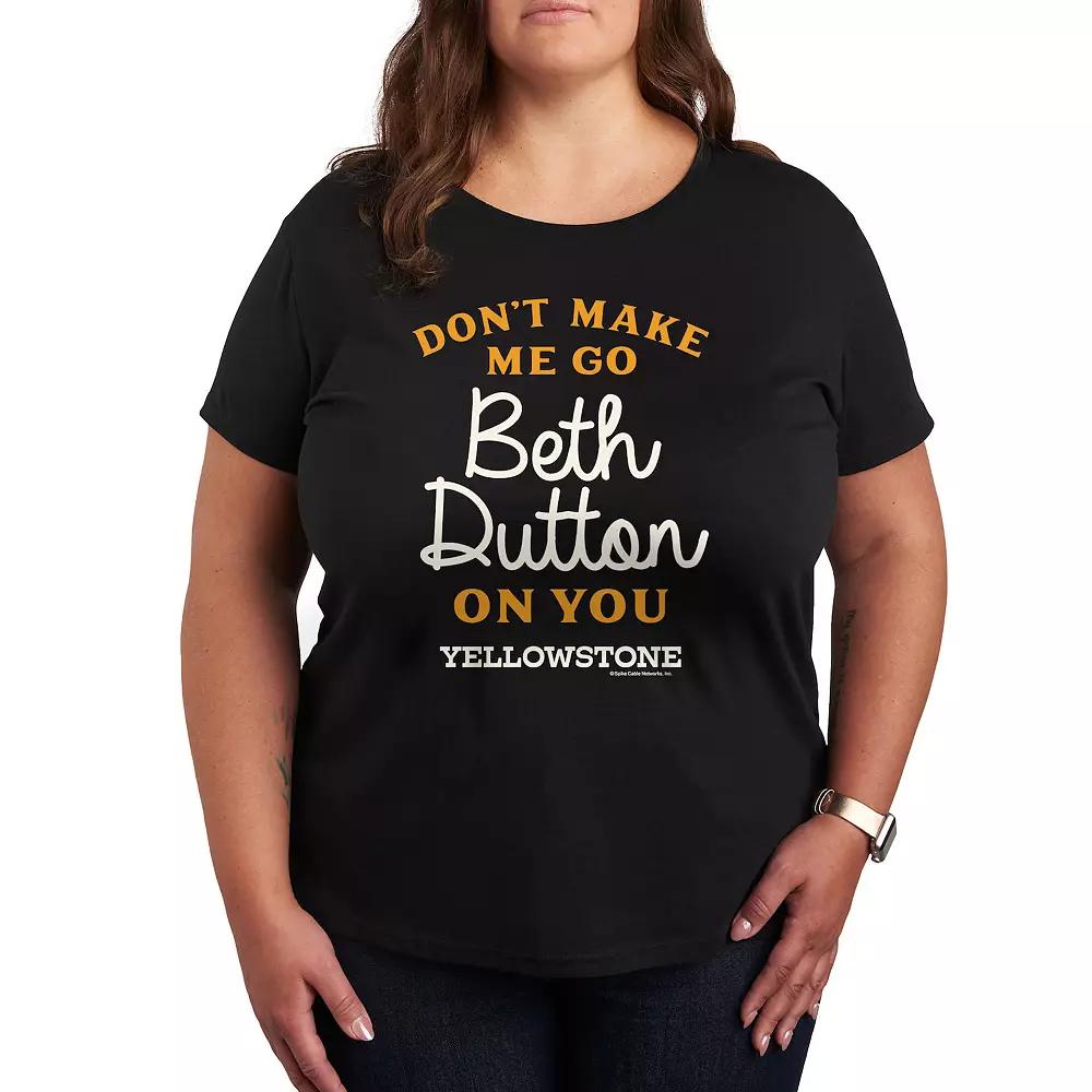 She will love showing off her style with this Plus Yellowstone Go Beth Dutton Graphic Tee. FEATURES Short sleeves CrewneckFABRIC & CARE Solid Color: Cotton ; Heather Colors: Cotton/Polyester Machine wash Imported Size: 1X. Color: Black. Gender: female. Age Group: adult.