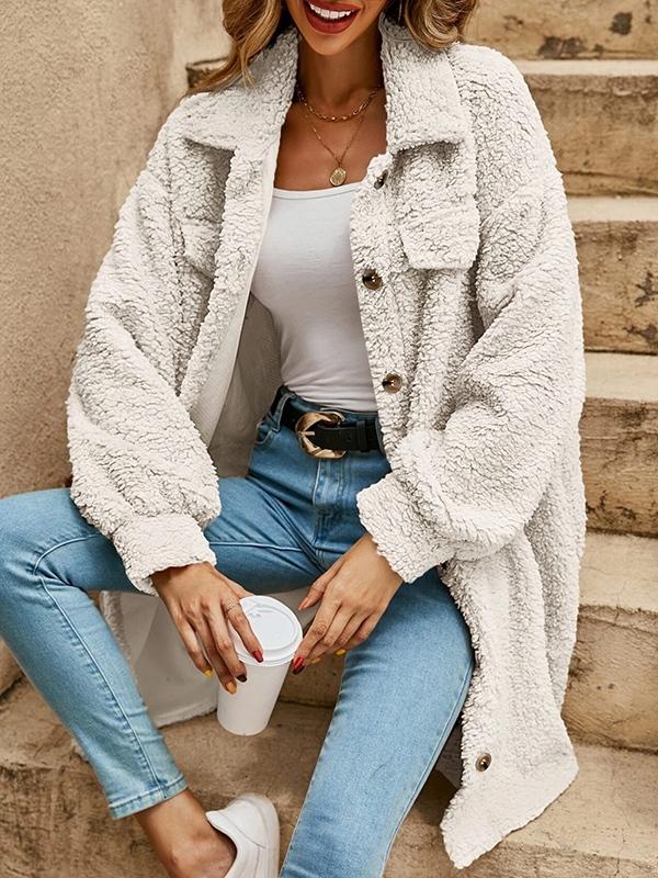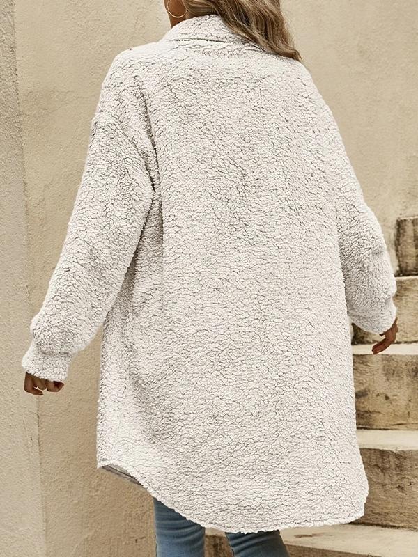 Plush Lapel Neck Flap Pocket Midi Jacket