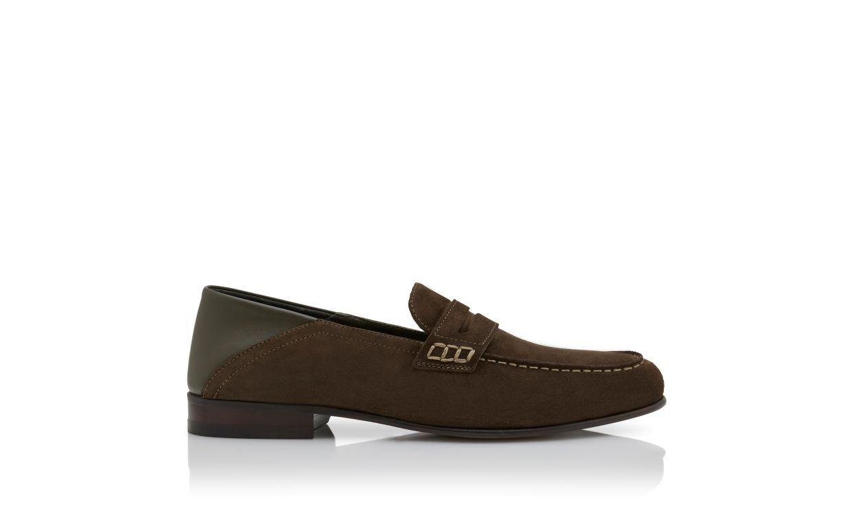 PLYMOUTH Dark Khaki Suede Penny Loafers