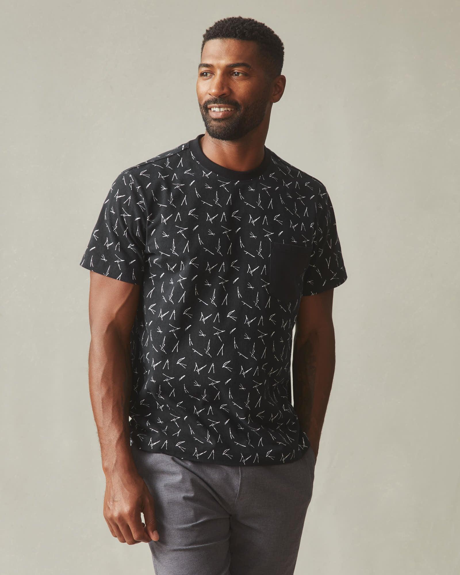 Pocket Tee - Black White Print