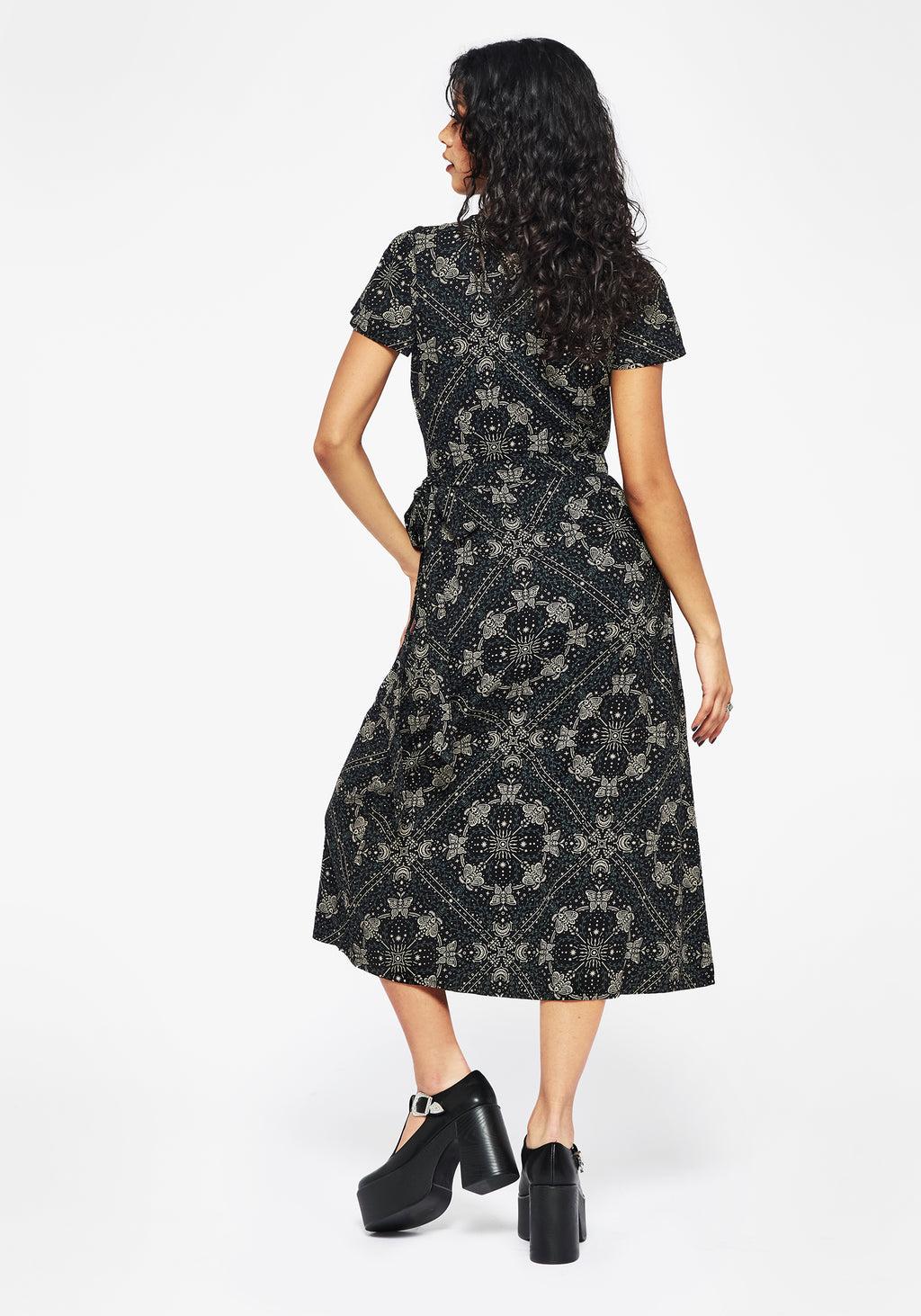 Poem Moth Printed Wrap Midi Dress