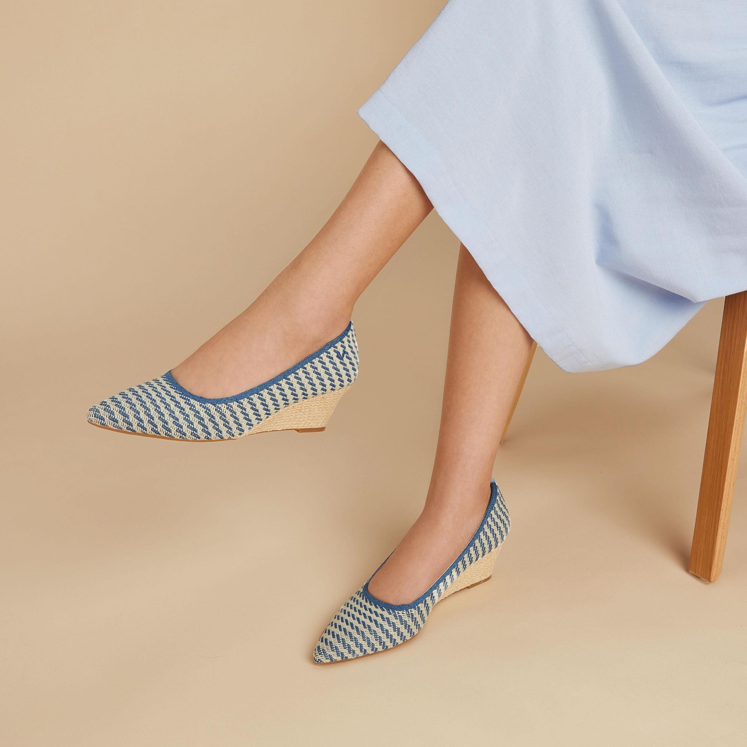 New Aria wedge, still your favorite pointed toe wedge, but with improved and added comfort, and a new outsole design. Diamond padded insoles, with arch support and heel padding for you to be comfortable all day long. Create a flattering silhouette, but stay comfortably pitched for all-day wear. Pair the Aria Wedge with trousers, mom jeans and a shirt, or a dress, and in the fall pair it with a plaid skirt and tights.