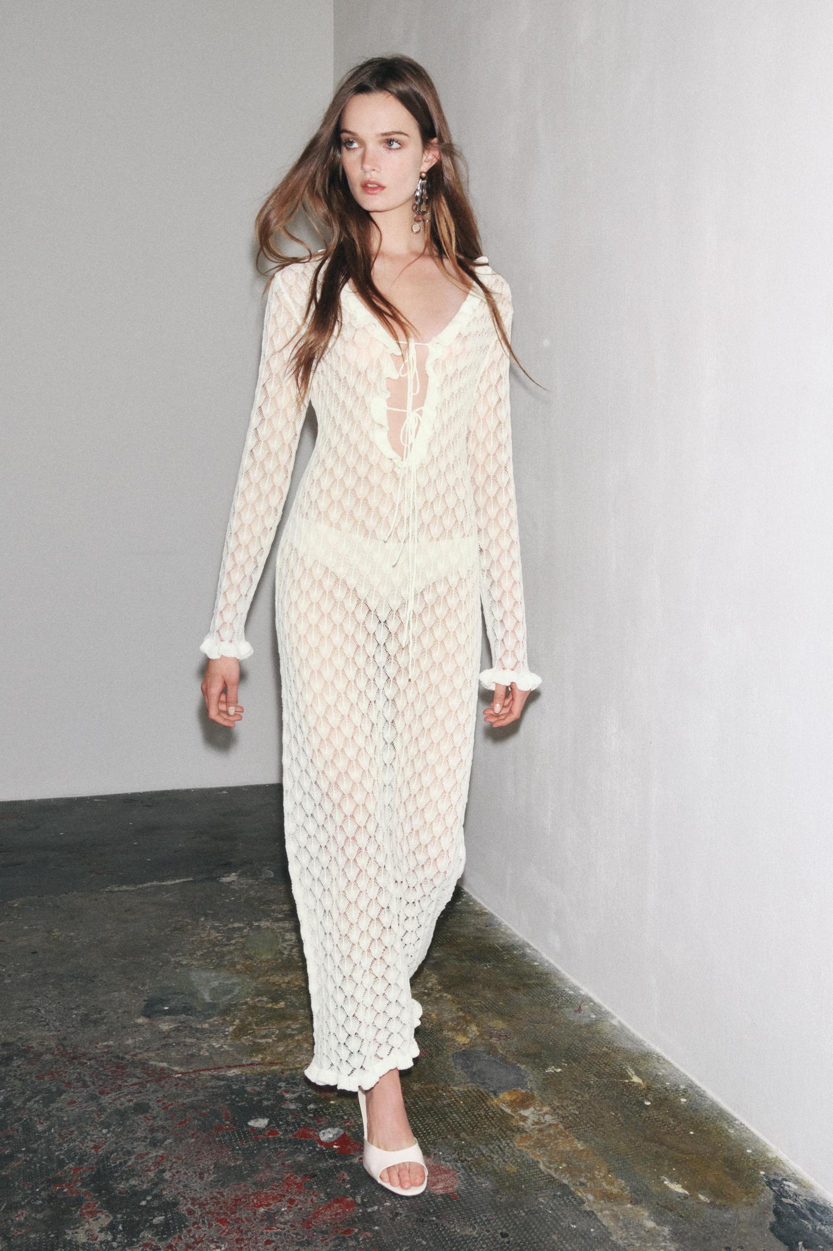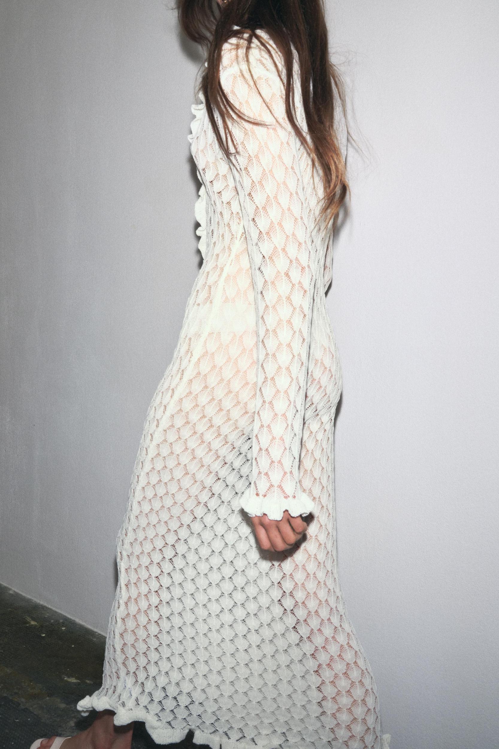 POINTELLE KNIT RUFFLED LONG DRESS