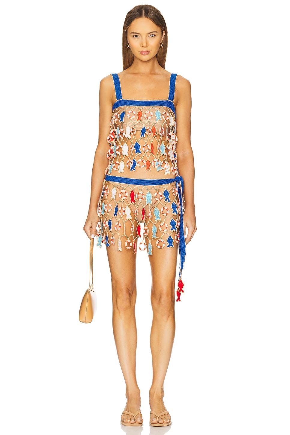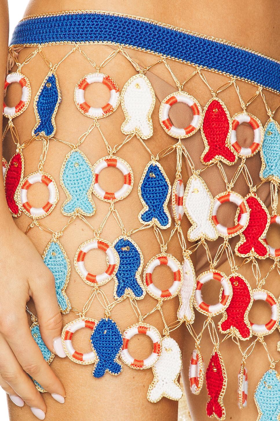 60% cotton, 40% acrylic. Hand wash cold. Unlined. Side tie closure. Draped crochet netting design. Garment is intentionally sheer, undergarments will show throughPlease note undergarment not includedItem not sold as set. Skirt measures approx 13" in length. Made in Turkey. Revolve Style No. MYBR-WQ30. Manufacturer Style No. S25CS01. One size fits most.