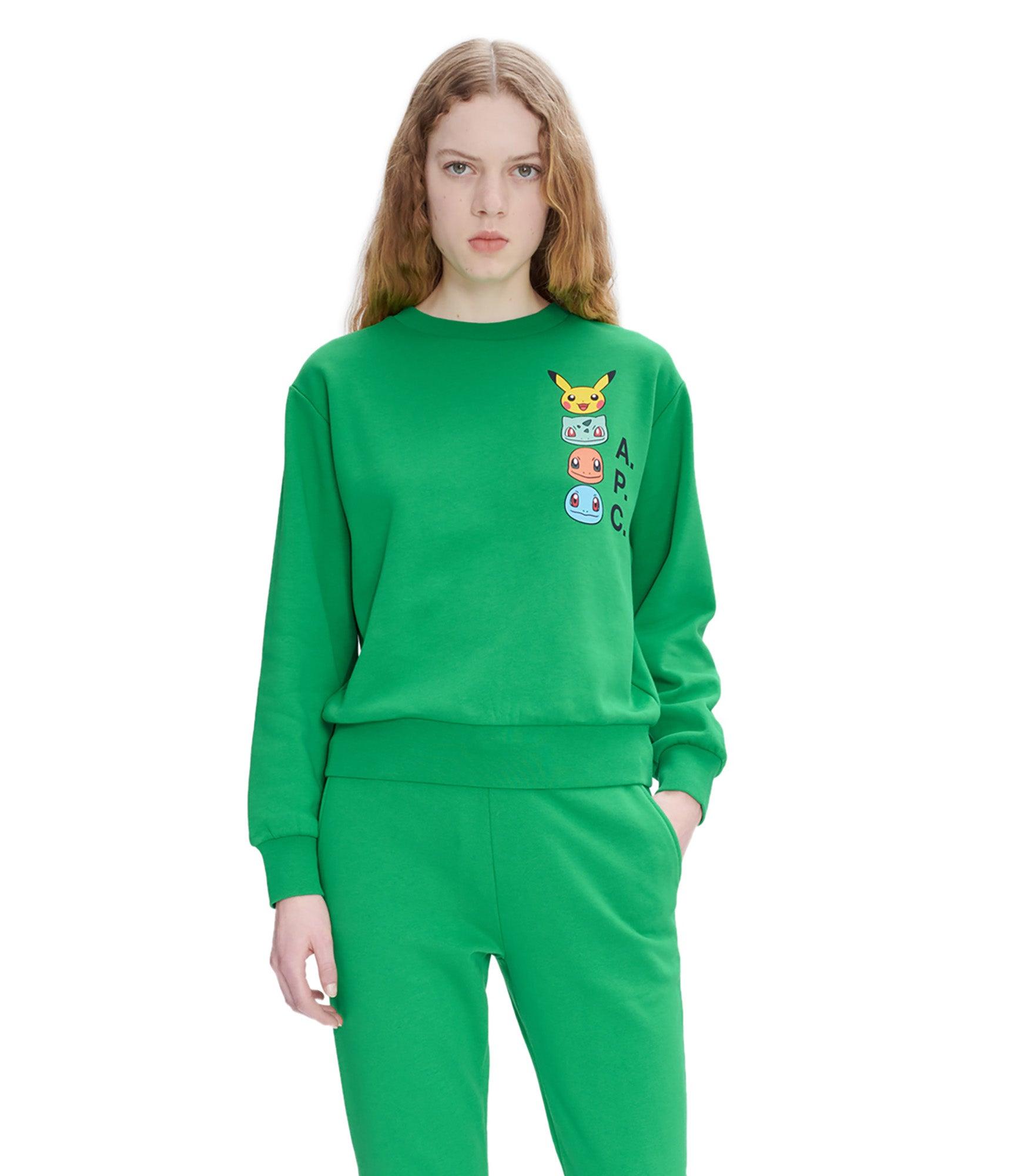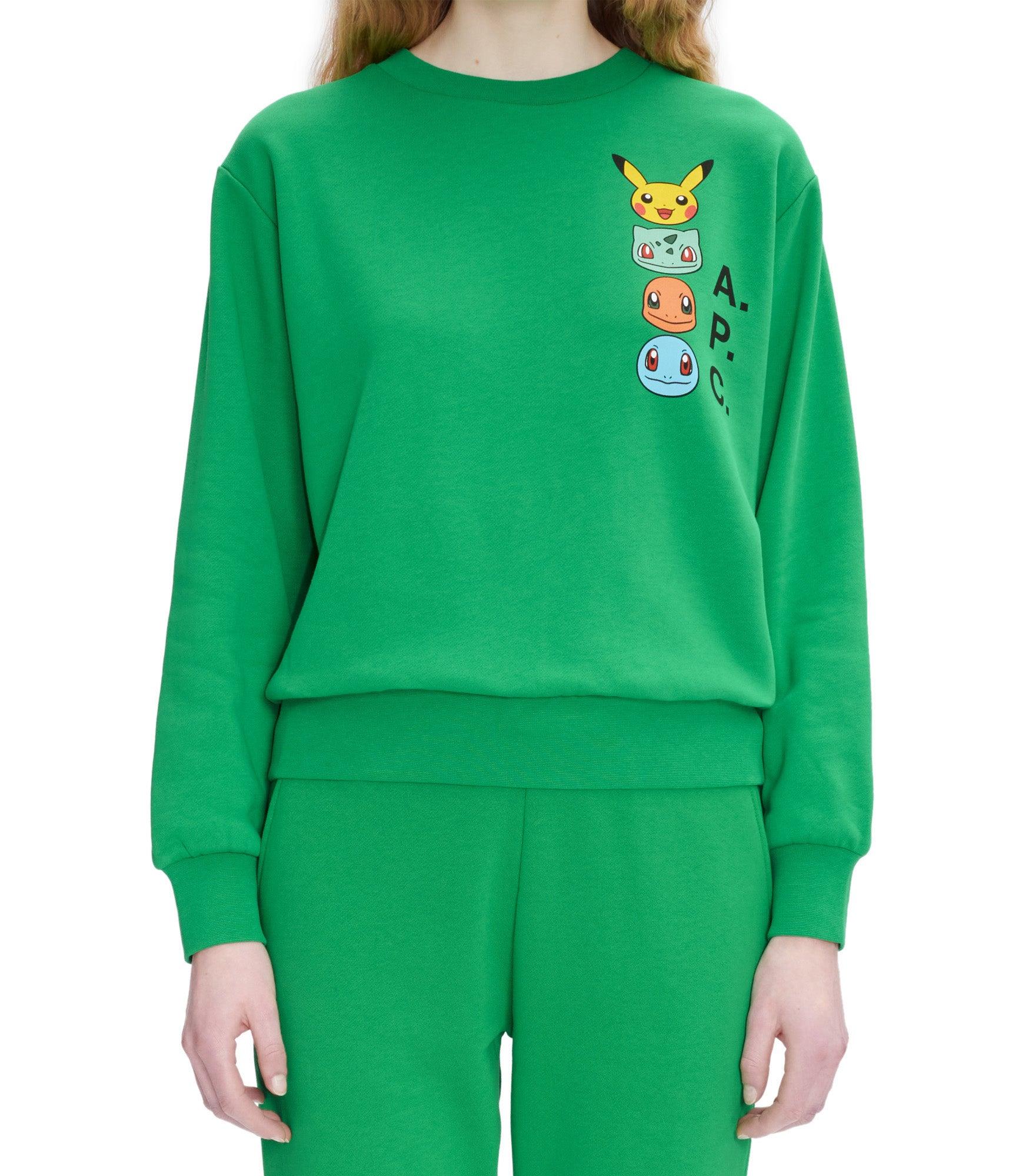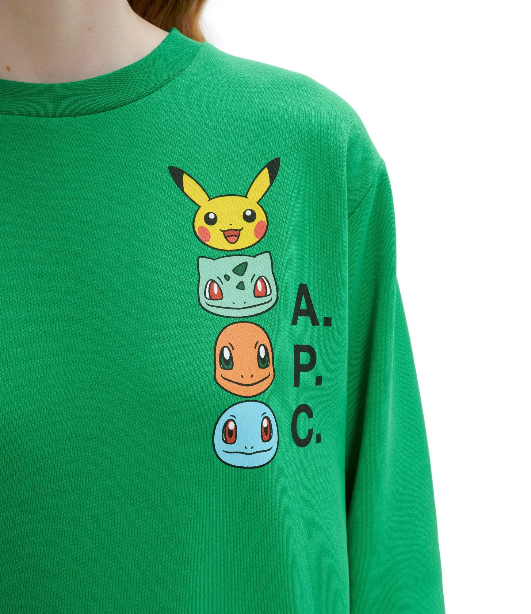 A.P.C. Women's sweatshirt. A.P.C. x Pokémon women's sweatshirt.- Straight, slightly loose cut. - Crew neck. - Sloping shoulders. - Screenprint with Pikachu, Bulbasaur, Squirtle and Charmander and the A.P.C. logo. - Special A.P.C. and Pikachu label at neck. - 100% organic cotton.