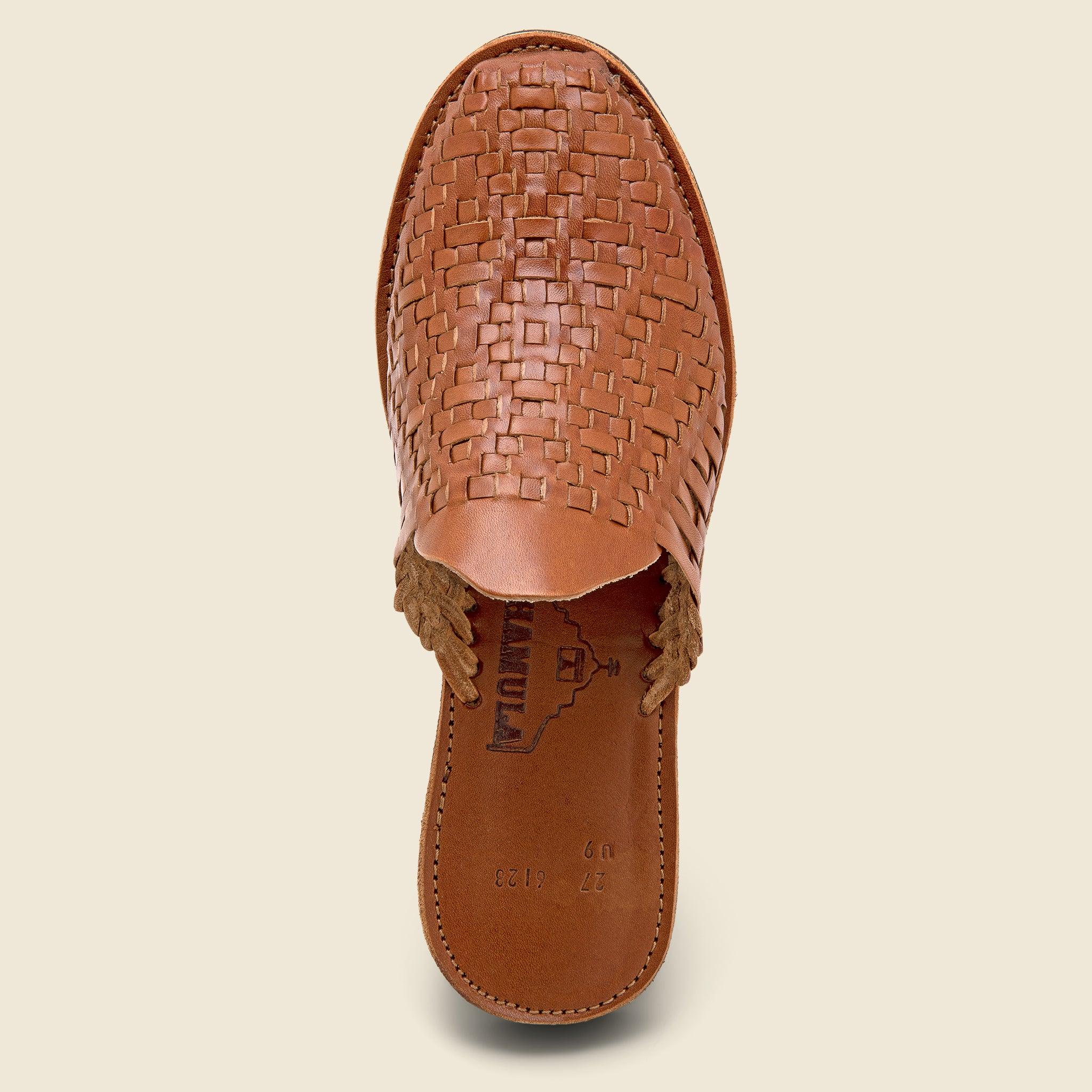 The Polanco Huaraches from Chamula are carefully hand-cut, dyed, and woven from heel to toe by local artisans in Central Mexico using traditional shoe-making techniques for a quality that’s second to none. The vegetable-tanned leather will form perfectly to the shape of your foot over time and the shock-absorbing EVA sole provides cushioned comfort with every step. Traditional leather huarache sandal Handmade in Central Mexico Slipper silhouette with a round toe Vegetable-tanned woven leather upper Shock-absorbing EVA sole Leather will stretch and form to the shape of your foot over time Chamula Huaraches run large, we recommend taking one full size down from your usual size Made in Mexico Materials: Upper: leather | Sole: EVA