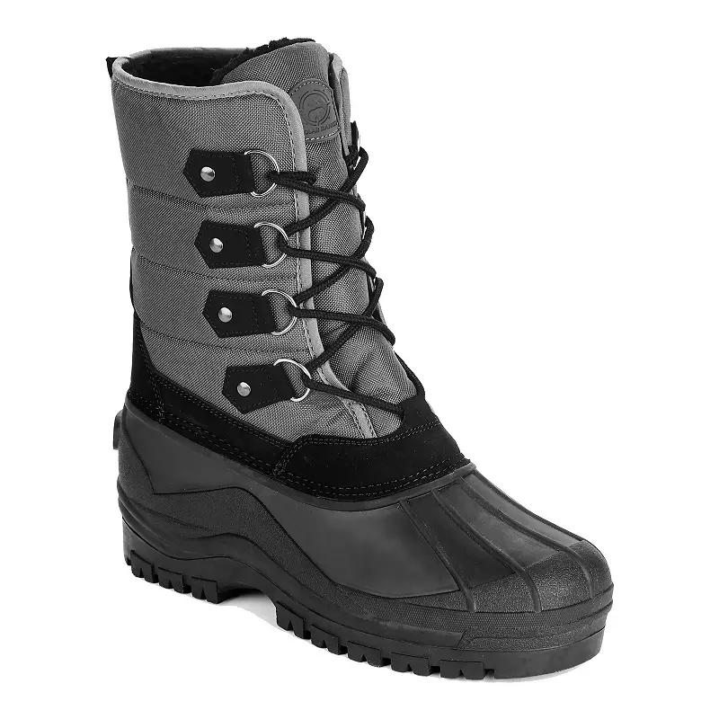 Protect yourself from the elements with these boots from Polar Range. Click this FOOTWEAR GUIDE to find the perfect fit and more! Protect yourself from the elements with these boots from Polar Range. Click this FOOTWEAR GUIDE to find the perfect fit and more! FEATURES Mid-calf shaft Product contains faux fur Water-RepellentDETAILS Nylon/faux leather upper Faux fur lining TPR midsole TPR outsole Round toe Lace-up Closure EVA footbed Treaded outsole 1.25-in. heel 1-in. platform 6-in. shaft height 10-in. shaft circumference Spot clean Imported Size: 12. Color: Gray. Gender: male. Age Group: adult.
