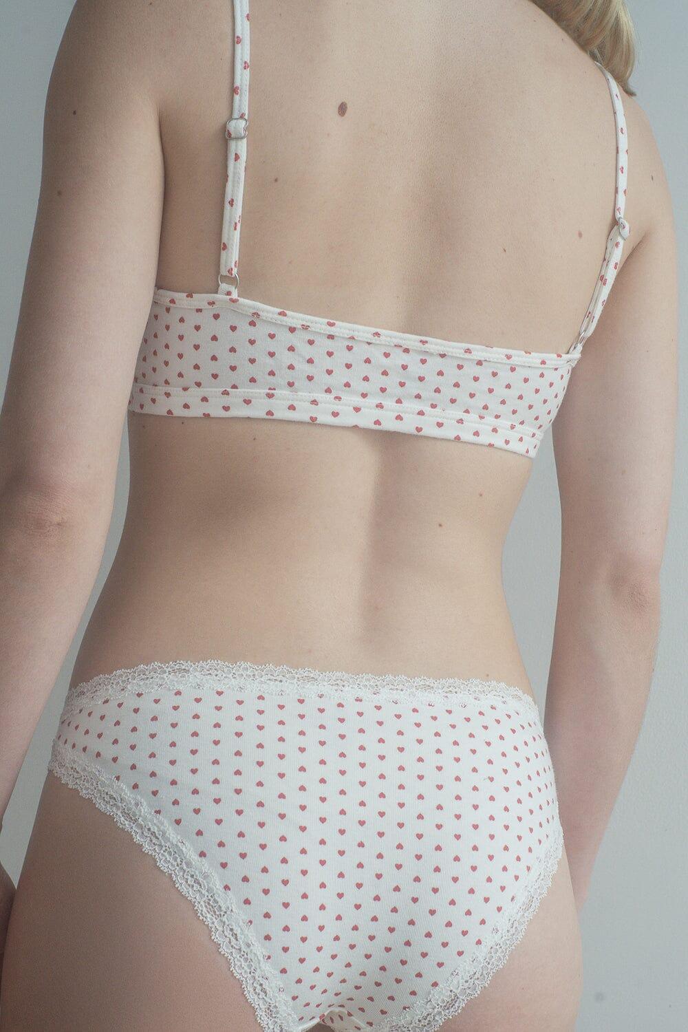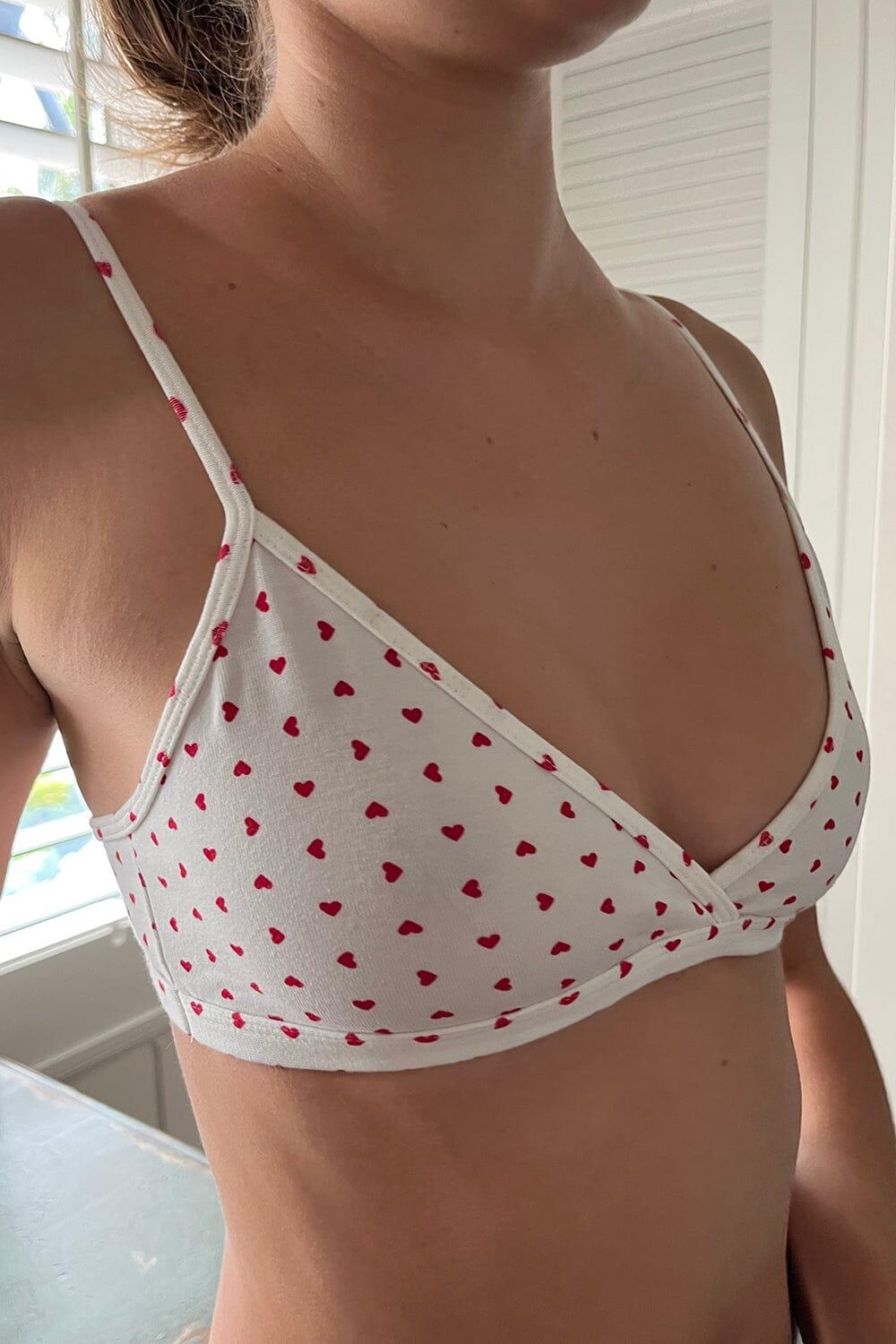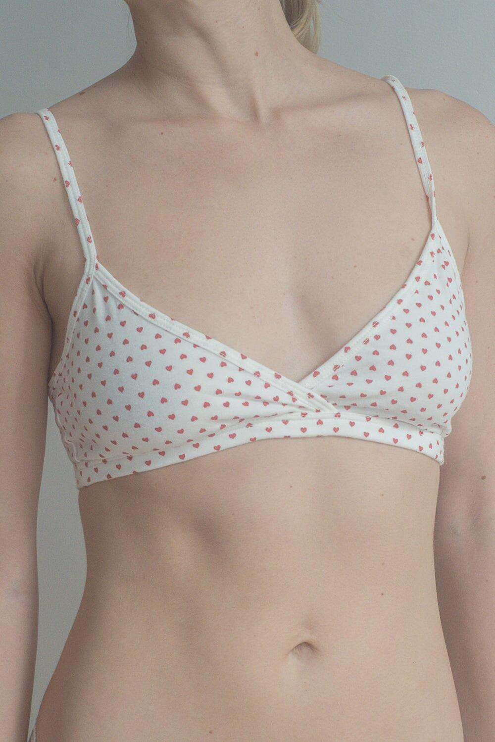 Bra style tank top in a red heart print with a crossover v-neckline, and adjustable strapsAll intimates are final sale.Fabrics: 96% cotton, 4% elastaneMeasurements: 10" (25 cm) length, 12" (30 cm) bust Made in: Europe