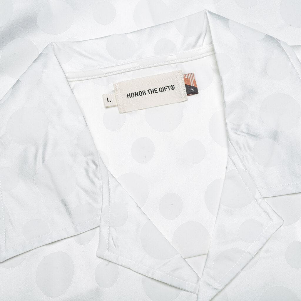 The Polka Dot Camp Shirt from Honor The Gift is crafted from 100% polyester jacquard fabric. The luxurious jacquard weave features a polka dot pattern across the shorts, creating a tonal and textured look. Designed with a camp collar, button closure, and chest pocket for timeless style. The look is finished with tonal embroidered branding. 100% Polyester Polka dot jacquard Camp collar Button closure Chest pocket Embroidered branding Style No: HTG250230-WHT HTG250230 WHIT