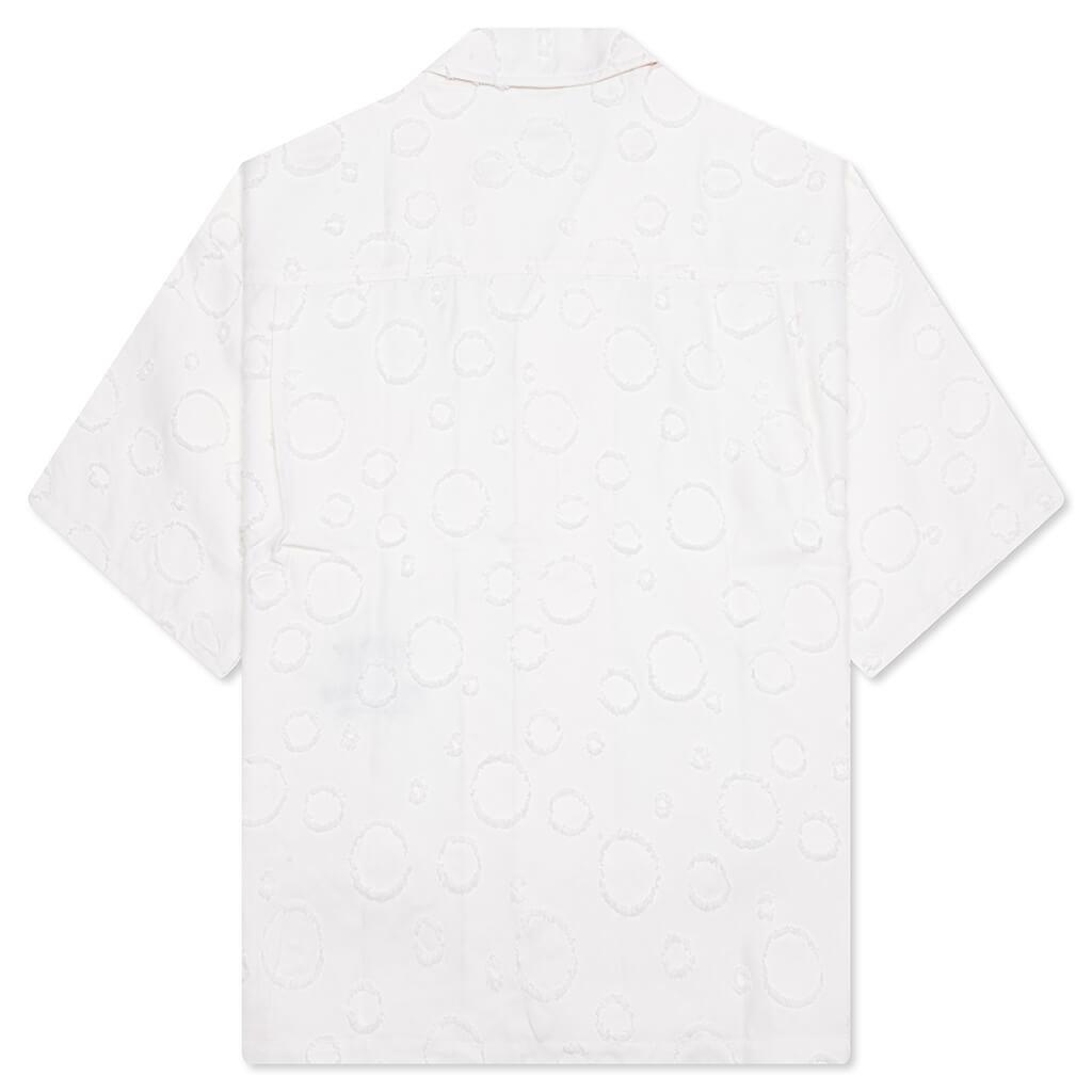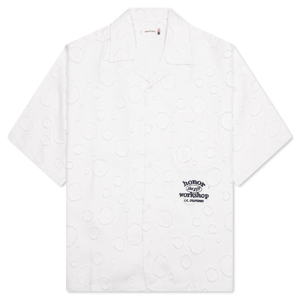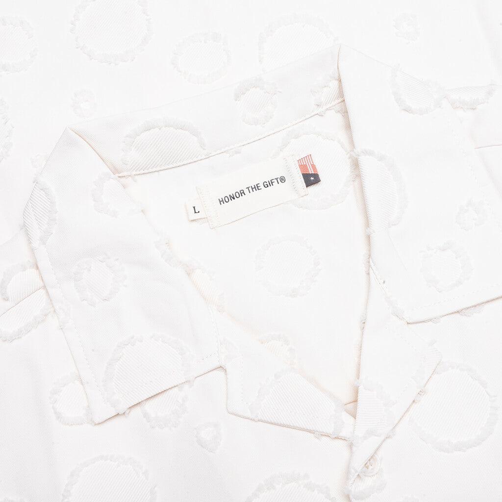 Honor the Gift presents the Polka Dot Camp Shirt—an elevated design of the classic camp shirt. Crafted from polyester jacquard, it brings a subtle textural depth through its understated polka dot motif. Designed with a cropped fit, it features a camp collar, button front closure, and chest pocket. Embroidered branding adds the finishing touch. 100% Polyester Cropped fit Polka dot jacquard Camp collar Button closure Chest pocket Embroidered branding Style No: HTG250330-WHT HTG250330 WHIT
