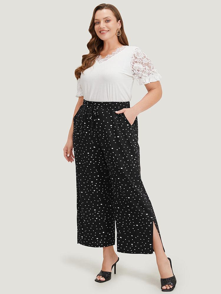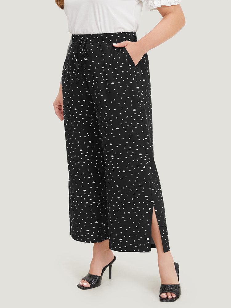 Shop Polka Dot Drawstring Pocket Split Hem Pants now and redefine your style with confidence at BloomChic. Tailored for mid and plus-size women. This trendy Bottoms Women, sizes 10-30. Season:Summer;Color:Black;Style:Elegant;Waist Design:High Rise;Pattern Type:Polka Dot;Details:Elastic Waist, Pocket, Bowknot, Slit;Pocket:It is perfectly sized to carry a phone.;Belt:No-belt;Closure Type:Elastic Waist