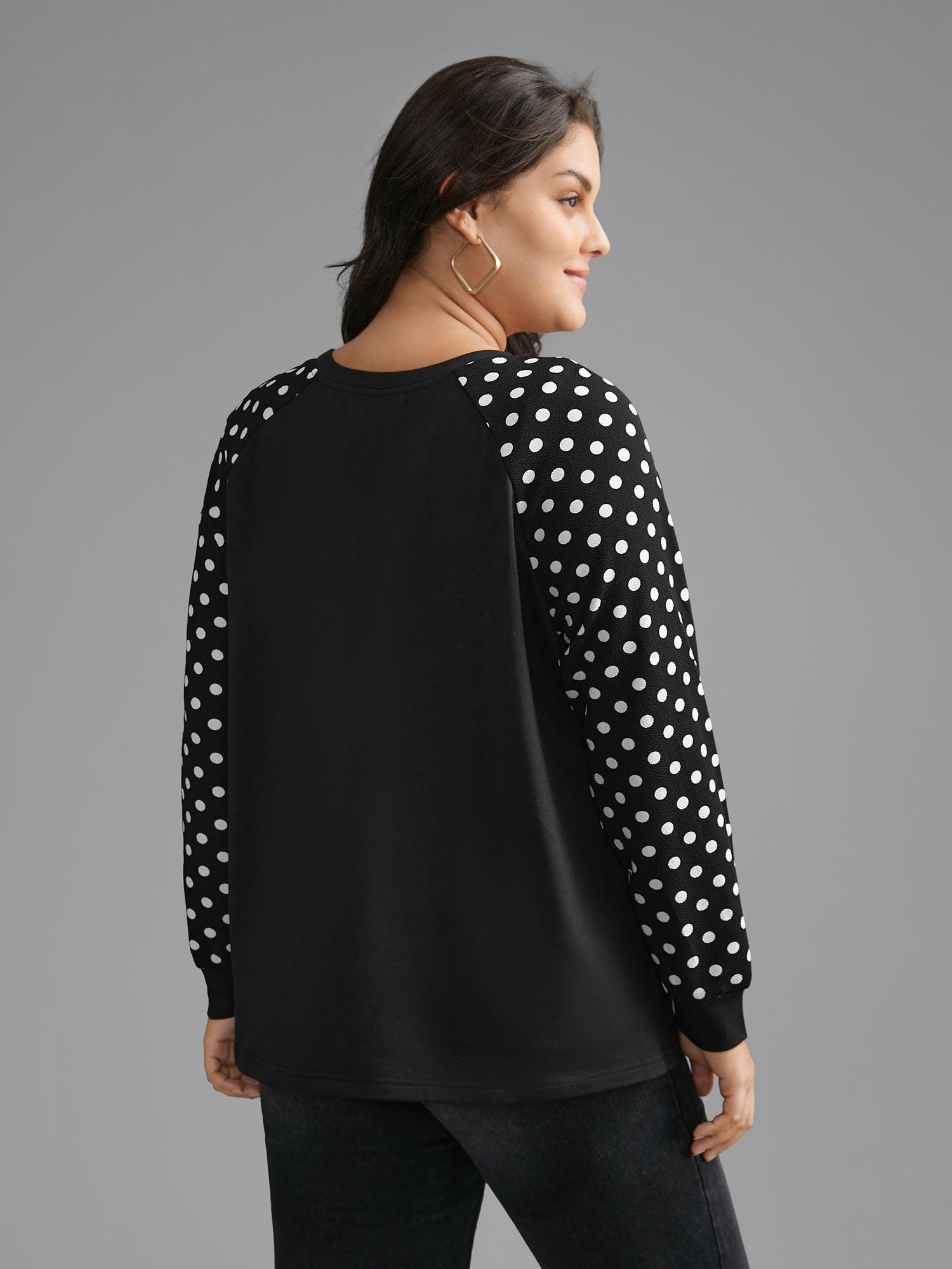 Shop Polka Dot Patchwork Raglan Sleeve Sweatshirt now and redefine your style with confidence at BloomChic. Tailored for mid and plus-size women. This trendy Tops Women, sizes 10-30. Season:Winter;Color:Black;Style:Casual;Neckline:Round Neck;Sleeve Type:Raglan sleeve;Prints:Polka dots;Details:Contrast, Patchwork;Pocket:No-pocket;Belt:No-belt;Closure Type:Non