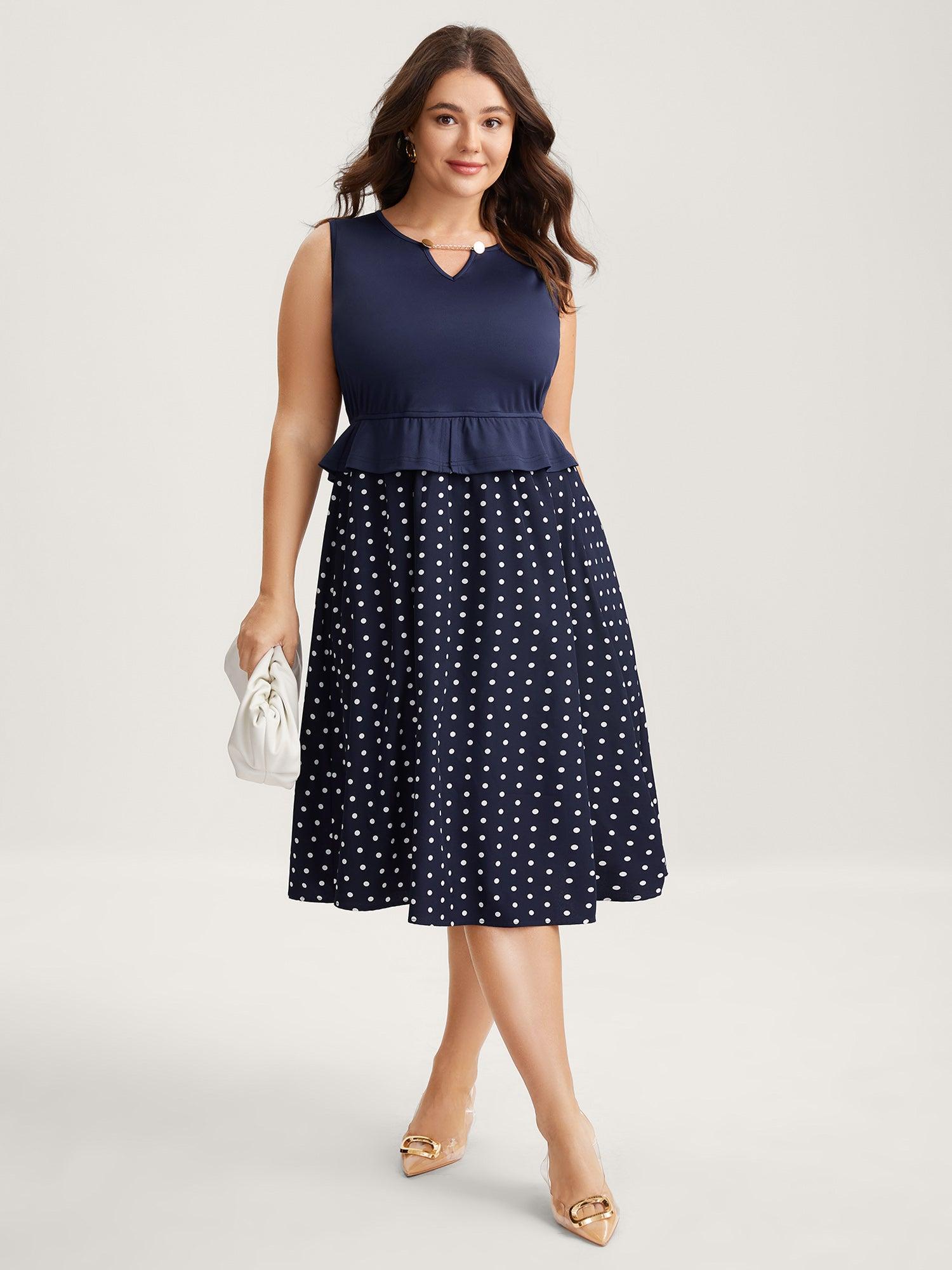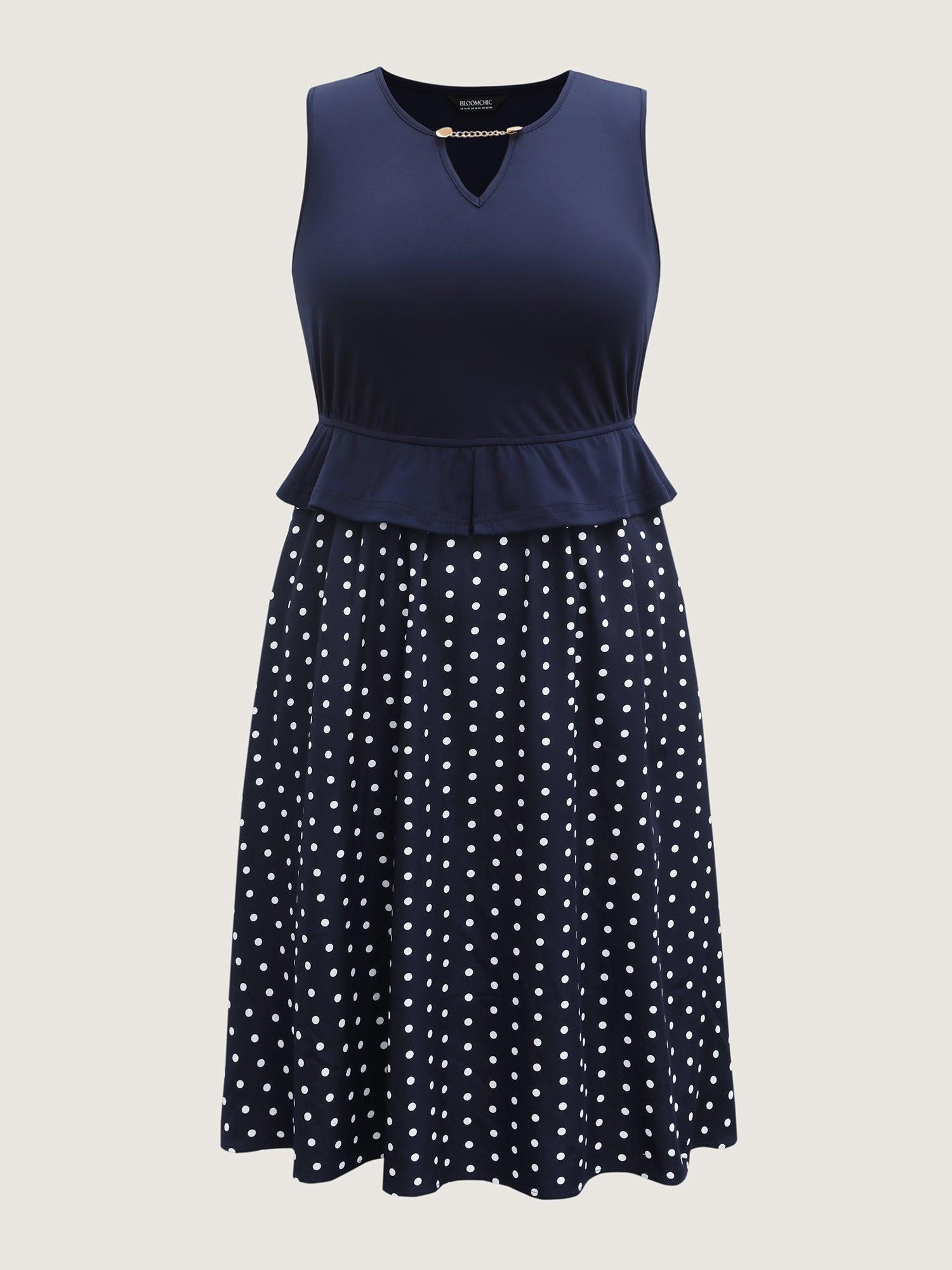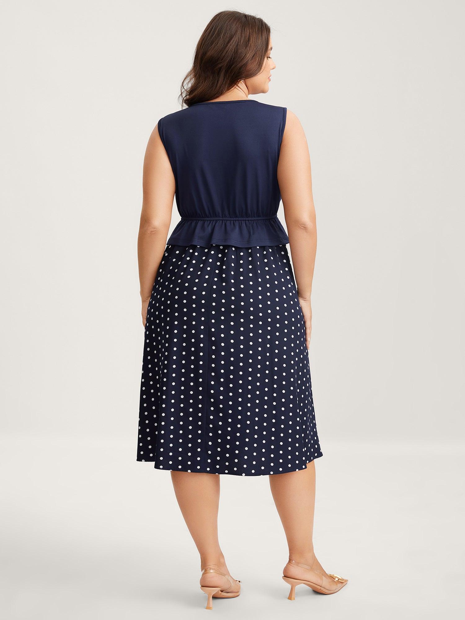 Shop Polka Dots Stretchy Waist Contrast Midi Dress now and redefine your style with confidence at BloomChic. Tailored for mid and plus-size women. This trendy Dress, sizes 10-30. You can never go wrong with BloomChic Dresses. Color:Indigo;Neckline:Asymmetrical Neck;Sleeve Type:Sleeveless;Prints:Polka dots;Pocket:Side seam pocket;Belt:No-belt;Closure Type:Non