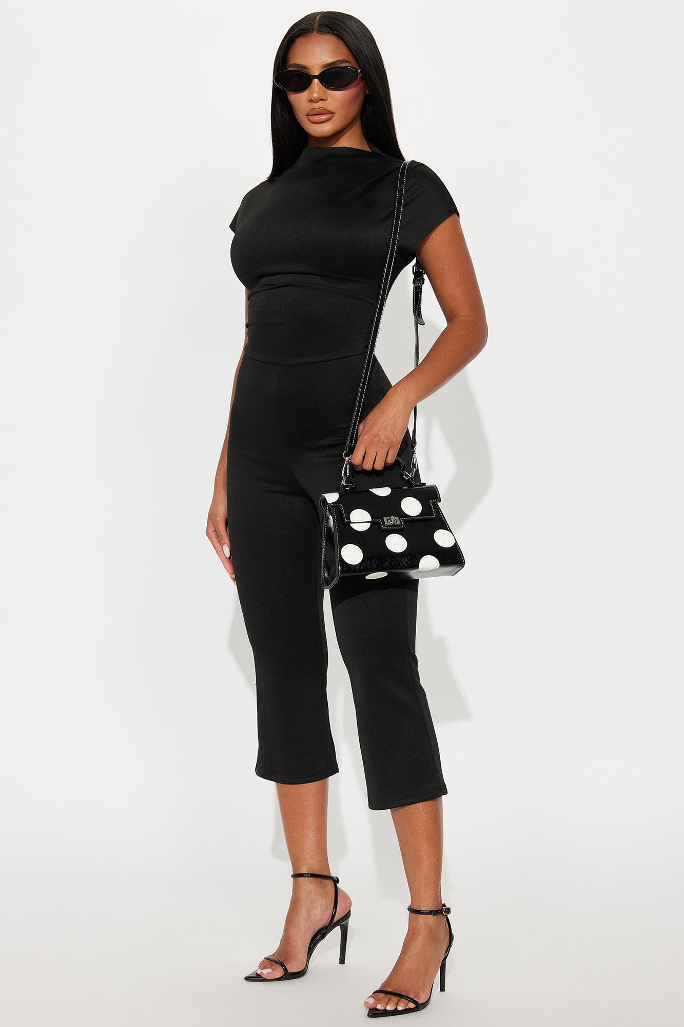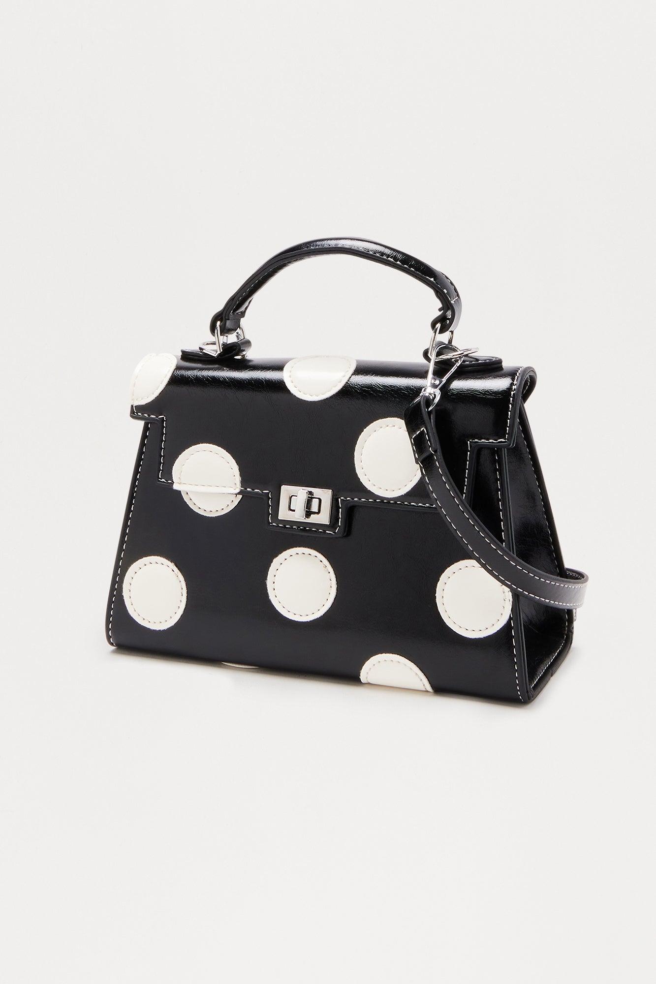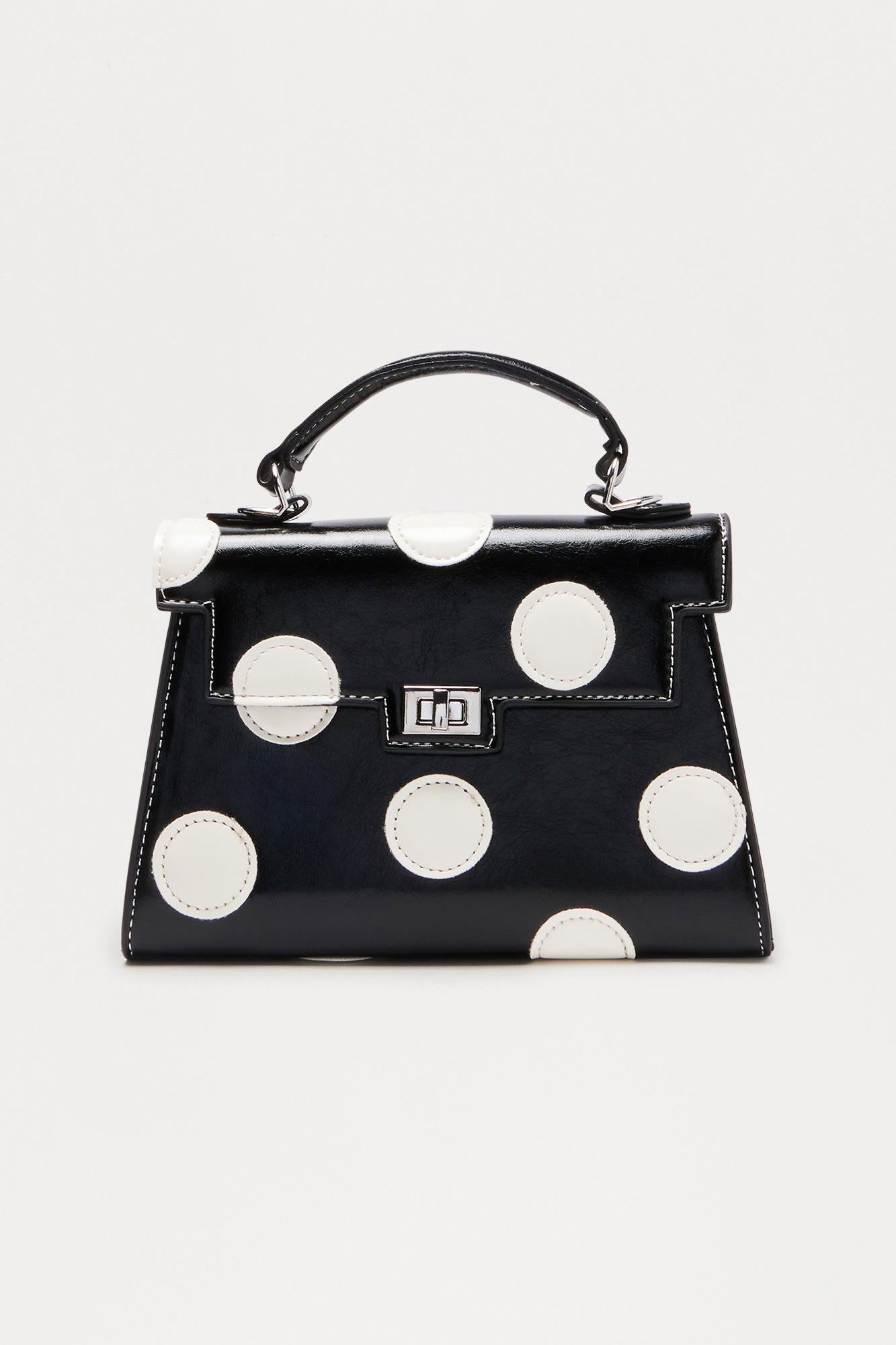 Polka Posh Faux Leather Satchel Handbag - Black/White Female