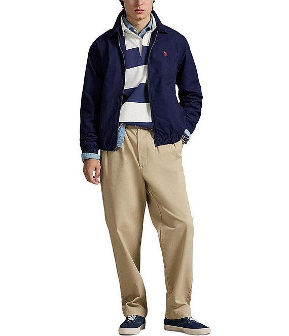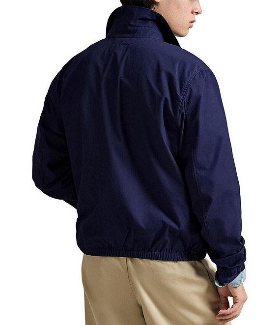 From Polo Ralph Lauren, this jacket features: Straight collar Buttoned throat tab Buttons custom-developed with a “Polo Ralph Lauren” logo Zip-front closure Long sleeves with elasticized cuffs Signature embroidered "Pony" on the left side of chest 2 front waist angled pockets Elasticized hem Unlined Cotton Machine wash/tumble dry Imported.