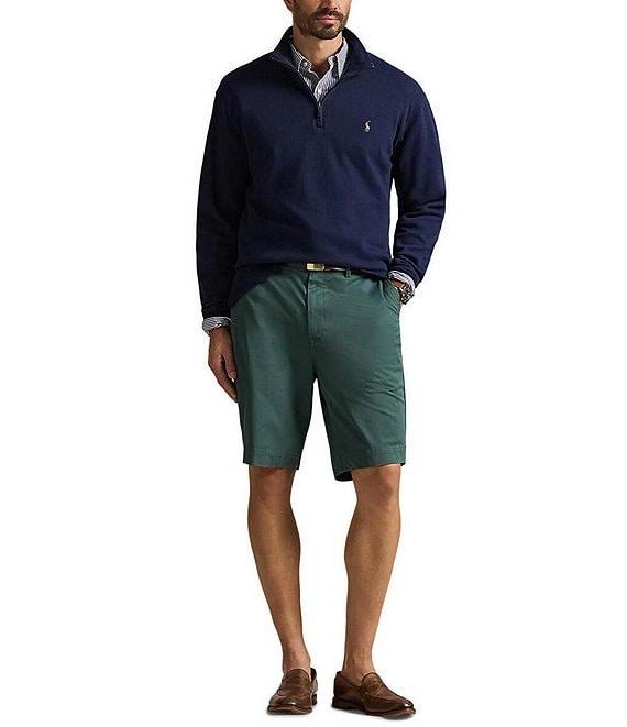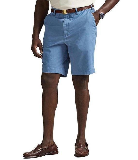 From Polo Ralph Lauren Big & Tall, these shorts feature: Mid-rise; sits at the waist Two front angled pockets Right hip coin pocket 2 back buttoned pockets Signature embroidered Pony above the back right pocket Eased fit through the leg Zip fly with a buttoned closure; belt loops Polo Ralph Lauren has updated the roomy Classic Fit with extra stretch to make these cotton-blend shorts even more comfortable to wear All Big sizes have approx. 9" inseam; All Tall sizes have approx. 10" inseam; Size 46W has a 12" rise Cotton/elastane Machine wash/tumble dry Imported.