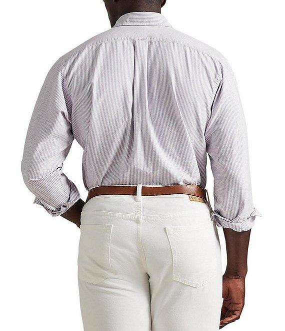 From Polo Ralph Lauren Big & Tall, this shirt features: Button-down collar Long sleeves with buttoned barrel cuffs Button-front closure Multicolored signature embroidered "Pony" on the left side of chest Split back yoke with a box pleat ensures a comfortable fit and a greater range of motion Cotton Machine wash/tumble dry Imported.