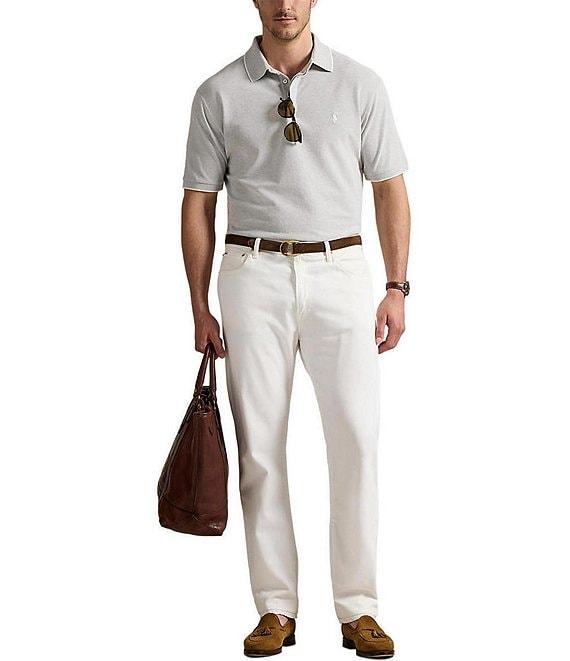 From Polo Ralph Lauren, this shirt features: Ribbed Polo collar with contrast tipping Concealed three-button placket Short sleeves Genuine mother-of-pearl buttons Signature embroidered Pony at the left chest Contrast tipping at the ribbed armbands Even vented hem Stretch mesh fabric Cotton/elastane Machine wash Imported.