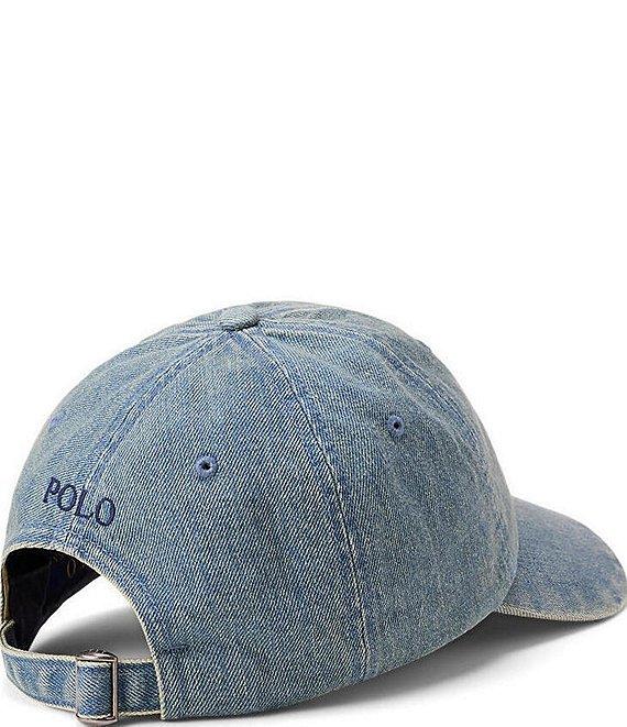 From Polo Ralph Lauren, this hat features: Classic baseball cap silhouette 6-panel construction with embroidered eyelets at the crown Ralph Lauren's signature embroidered "Pony" accents the center front Seamed bill Adjustable back strap with an antiqued nickel buckle Embroidered "Polo" at the center back One size Approx. 23 1/4 circumference Cotton Spot clean Imported.