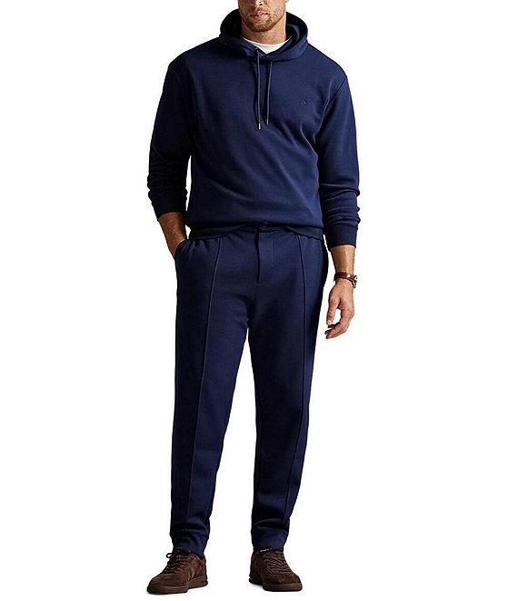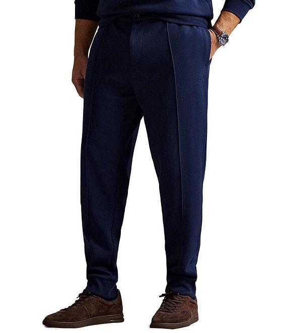 From Polo Ralph Lauren, these pants feature: Mid rise Elastic waistband with an interior drawstring Zip/button-front closure Zipper pull custom-developed with a "Polo" logo Signature embroidered "Pony" on the left hip Genuine horn button Side on-seam pockets Back-right patch pocket Ribbed leg hems Lightweight, smooth double-knit fabric with mesh underside Shell of cotton/polyester; ribbed trim of cotton/polyester/elastane Machine wash/tumble dry Imported.