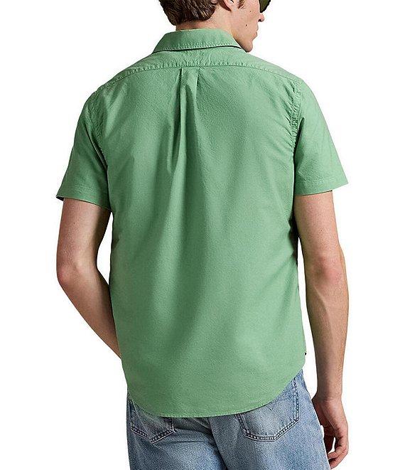 From Polo Ralph Lauren Big & Tall, this shirt features: spread collar garment-dyed oxford button-down point collar short sleeves buttoned placket split back yoke with a box pleat ensures a comfortable fit and a greater range of motion signature embroidered pony at the left chest cotton machine wash/tumble dry Imported.