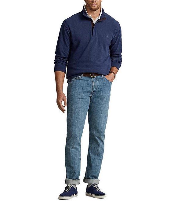 From Polo Ralph Lauren Big & Tall, these jeans feature: Mid rise Relaxed fit sits slightly below the natural waist zip fly with a signature shank closure Belt loops 5-pocket jeans with signature metal rivets at the front signature "Polo Ralph Lauren" leather patch at the back right waist subtly-tapered leg openings cotton machine wash/tumble dry Imported.