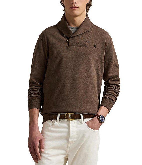From Polo Ralph Lauren Big & Tall, this pullover features: Ribbed shawl collar with a two-button closure at the right side Long sleeves with ribbed cuffs Signature embroidered Pony at the left chest Ribbed hem Pullover construction Cotton blend Machine wash/tumble dry Imported.