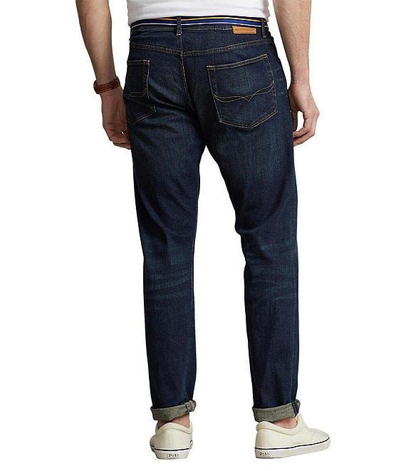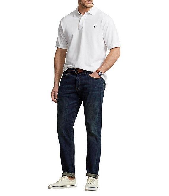 From Ralph Lauren Big & Tall, these jeans feature: Mid rise zip fly with a signature buttoned closure belt loops 5-pocket jeans with signature metal rivets woven "Polo" label at the coin pocket leather "Polo Ralph Lauren" patch at the back right waist stretch fabric cotton/recycled cotton/elastane machine wash/tumble dry Imported.
