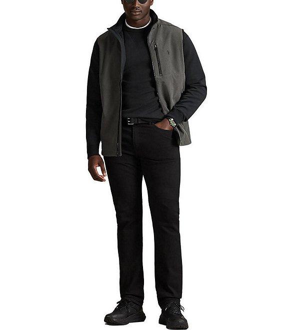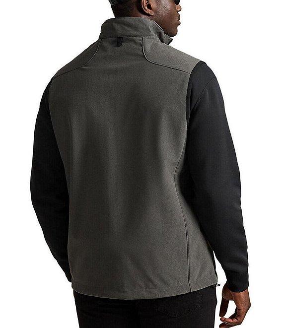 From Polo Ralph Lauren Big & Tall, this vest features: Mock neck Full-zip front Zipper pulls custom-developed with a “Polo” logo Signature embroidered "Pony" on the left side of chest Stretch binding at the armholes Left chest zipped pocket 2 front waist zipped pockets Interior drawstring hem Lined at the front of the body with mesh Water repellent Fleece lining Polyester/elastane Machine wash/tumble dry Imported.