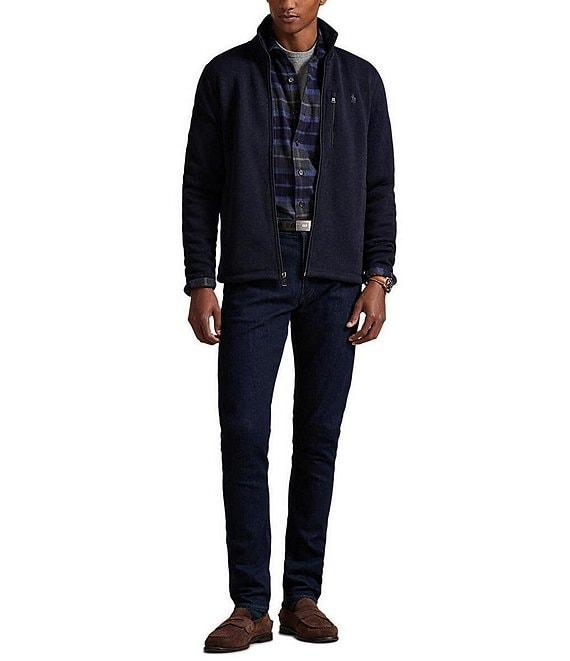 From Polo Ralph Lauren, this jacket features: Mock neckline Long sleeves Zip-front closure Zipper pulls custom-developed with a “Polo” logo Signature embroidered "Pony" on the left side of chest Left chest zip pocket 2 front waist zip pockets Drawstring hem Stretch jersey lining at the front body for a super-soft feel and a comfortable fit Shell of polyester; lining of polyester/elastane Machine wash/tumble dry Imported.