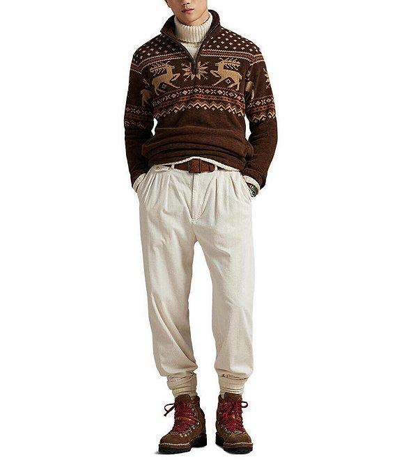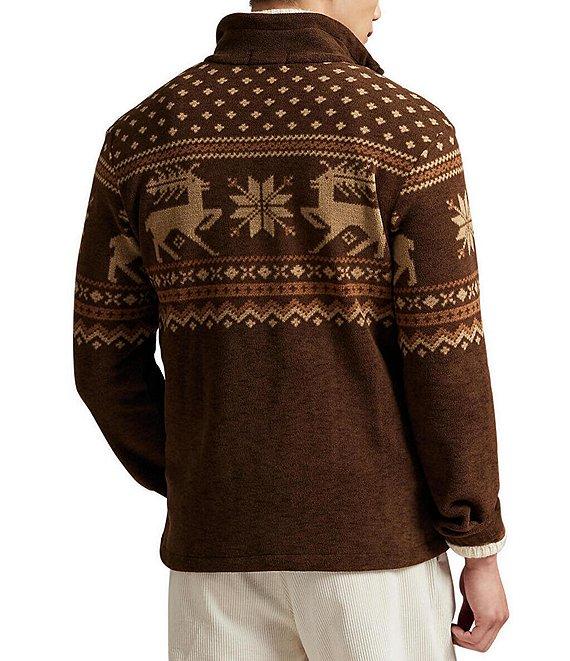 From Polo Ralph Lauren, this pullover features: Fair Isle-inspired print that includes moose and snowflakes for a rustic look Mock neck Quarter-zip placket Zipper pull custom-developed with a Polo logo Long sleeves with elasticized cuffs Side on-seam pockets Drawcord at the left hem Signature embroidered pony at the right hem Polyester Machine wash Imported.