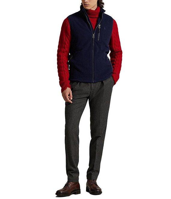 From Polo Ralph Lauren, this vest features: Mock neckline Sleeveless Stretch binding at the armholes Zip-front closure Left chest zip pocket Signature embroidered "Pony" on the left side of chest 2 front waist zip pockets Drawstring hem Fully lined with mesh Super-soft brushed fleece Mesh lining Shell of recycled polyester; lining of polyester Machine wash/tumble dry Imported.