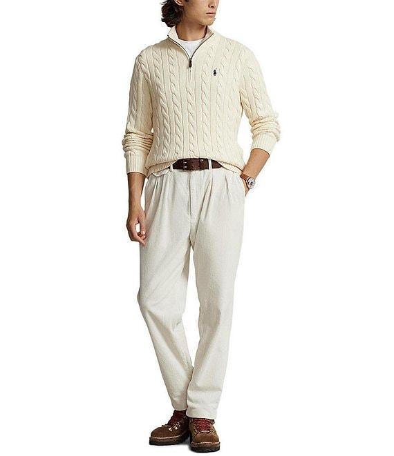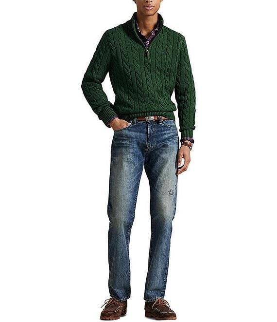 From Polo Ralph Lauren, this sweater features: Rib-knit mock neck Long sleeves with rib-knit cuffs Quarter-zip placket Leather zipper pull Signature embroidered Pony on the left side of the chest Rib-knit hem Cotton Machine wash/tumble dry Imported.