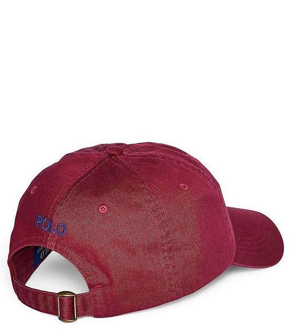 From Polo Ralph Lauren, this hat features: classic baseball cap silhouette 6-panel construction with embroidered eyelets at the crown Ralph Lauren's signature embroidered pony accents the center front seamed bill adjustable back strap with an antiqued nickel buckle embroidered "Polo" at the center back one size Approx. 23 1/4 circumference cotton spot clean Imported.
