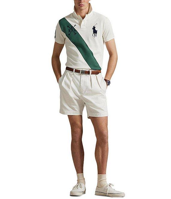 From Polo Ralph Lauren, this polo shirt features: Ribbed Polo collar Short sleeves with ribbed armbands Twill “3” patch on the right sleeve 2-button placket Signature embroidered "Big Pony" on the left side of chest "PRL" and crossed mallets embroidered on the right side of chest Stripe across chest Even vented hem Pullover construction Cotton Machine wash/tumble dry Imported.