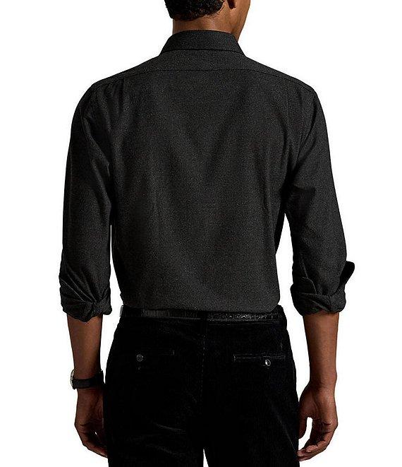 From Polo Ralph Lauren, this shirt features: Medium-spread collar Long sleeves with buttoned barrel cuffs Button-front closure Embroidered "Pony" on the left side of the chest Split pleated back yoke ensures smooth, contoured shoulders Moisture wicking Stretch fabric Cotton/polyester Machine wash/tumble dry Imported.
