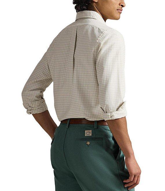 From Polo Ralph Lauren, this shirt features: Button-down collar Long sleeves with buttoned barrel cuffs Button-front closure Embroidered "Pony" on the left side of chest Split back yoke with a box pleat Cotton Machine wash/tumble dry Imported.