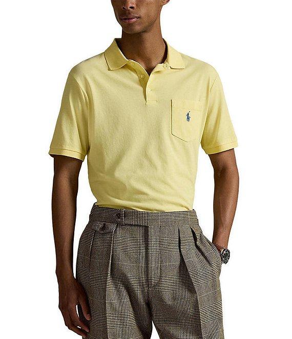 From Polo Ralph Lauren, this polo shirt features: Ribbed polo collar 3-button placket Short sleeves with ribbed armbands Patch pocket with signature embroidered Pony on the left side of the chest Even vented hem Cotton Machine wash/tumble dry Imported.