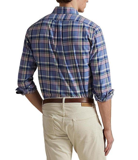 From Polo Ralph Lauren, this shirt features: Button-down collar Long sleeves with buttoned barrel cuffs Button-front closure Signature embroidered "Pony" on the left side of chest Split back yoke with a box pleat ensures a comfortable fit and a greater range of motion Cotton Machine wash/tumble dry Imported.