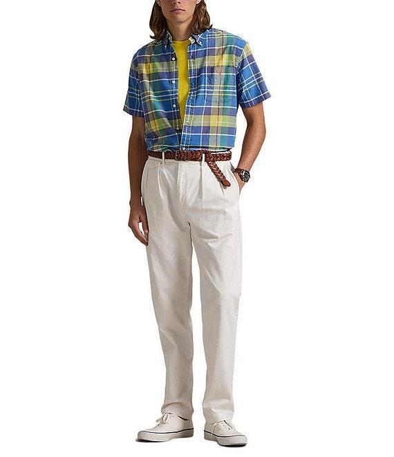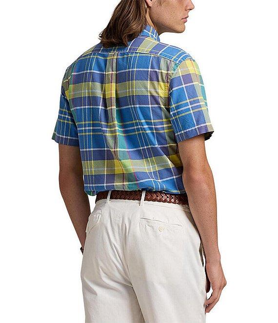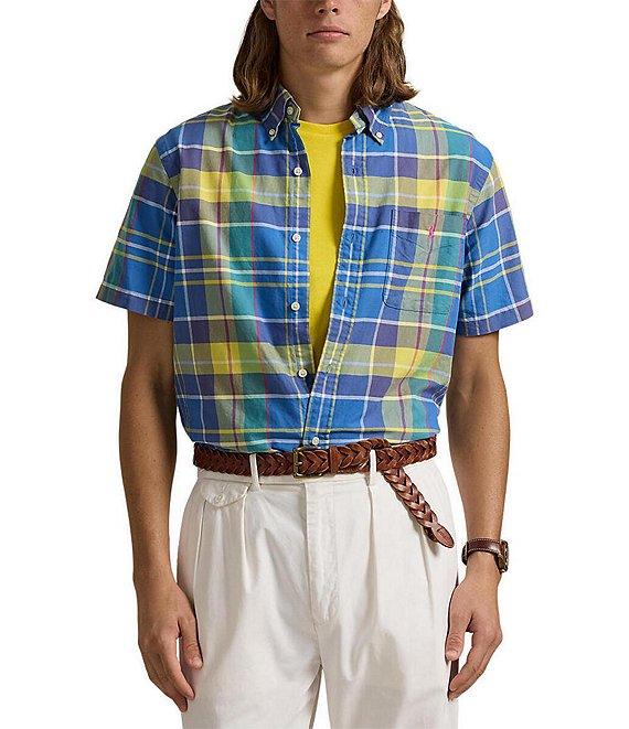 From Polo Ralph Lauren, this shirt features: Button-down collar Short sleeves Button-front closure Patch pocket on the left side of the chest Signature embroidered Pony at the pocket Split back yoke with a box pleat ensures a comfortable fit and a greater range of motion Cotton Machine wash/tumble dry Imported.