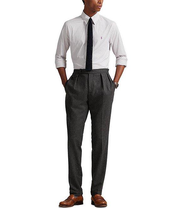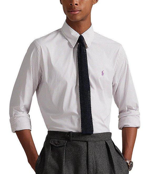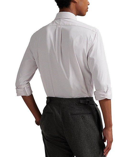 From Polo Ralph Lauren, this shirt features: Button-down collar Buttoned placket Long sleeves with buttoned barrel cuffs Signature embroidered Pony on the left side of the chest Split back yoke with a box pleat ensures a comfortable fit and a greater range of motion Moisture wicking Stretch fabric Nylon/elastane Machine wash/tumble dry Imported.