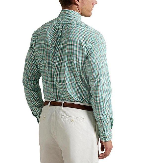 From Polo Ralph Lauren, this shirt features:Button-down collarButtoned placketLong sleeves with buttoned barrel cuffsSignature embroidered Pony on the left side of the chestSplit back yoke with a box pleat ensures a comfortable fit and a greater range of motionMoisture wickingStretch fabricNylon/elastaneMachine wash/tumble dryImported.