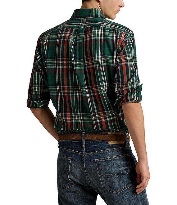 From Polo Ralph Lauren, this shirt features: Button-down collar Long sleeves with buttoned barrel cuffs Button-front closure Signature embroidered "Pony" on the left side of chest Split back yoke with a box pleat ensures a comfortable fit and a greater range of motion Cotton Machine wash/tumble dry Imported.