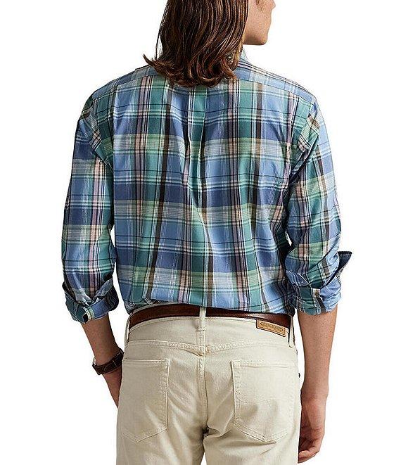 From Polo Ralph Lauren, this shirt features: Classic fit Plaid pattern Button-down collar Long sleeves Button-front closure Signature embroidered "Pony" on the left side of chest Split back yoke with a box pleat ensures a comfortable fit and a greater range of motion Lightweight cotton poplin Machine wash/tumble dry Imported.