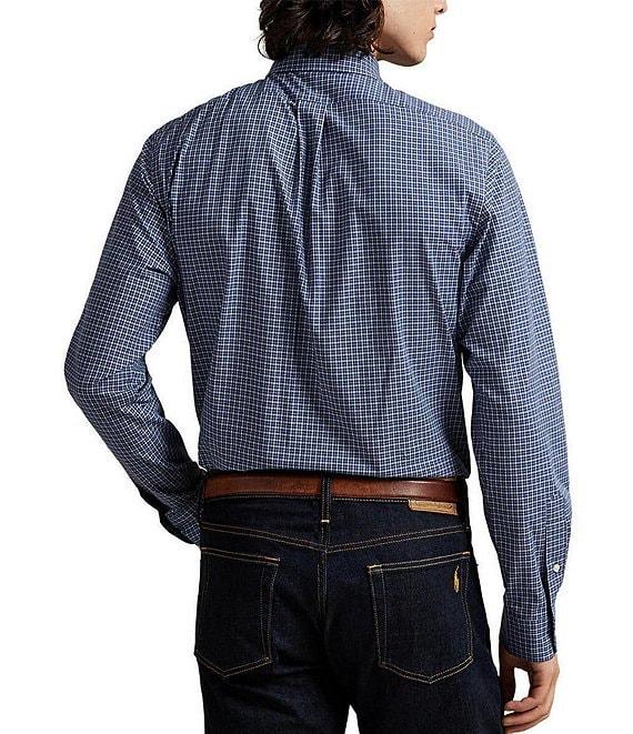 From Polo Ralph Lauren, this shirt features: Button-down collar Long sleeves with buttoned barrel cuffs Button-front closure Signature embroidered "Pony" on the left side of chest Split back yoke with a box pleat ensures a comfortable fit and a greater range of motion Stretch poplin fabric Cotton/elastane Machine wash/tumble dry Imported.